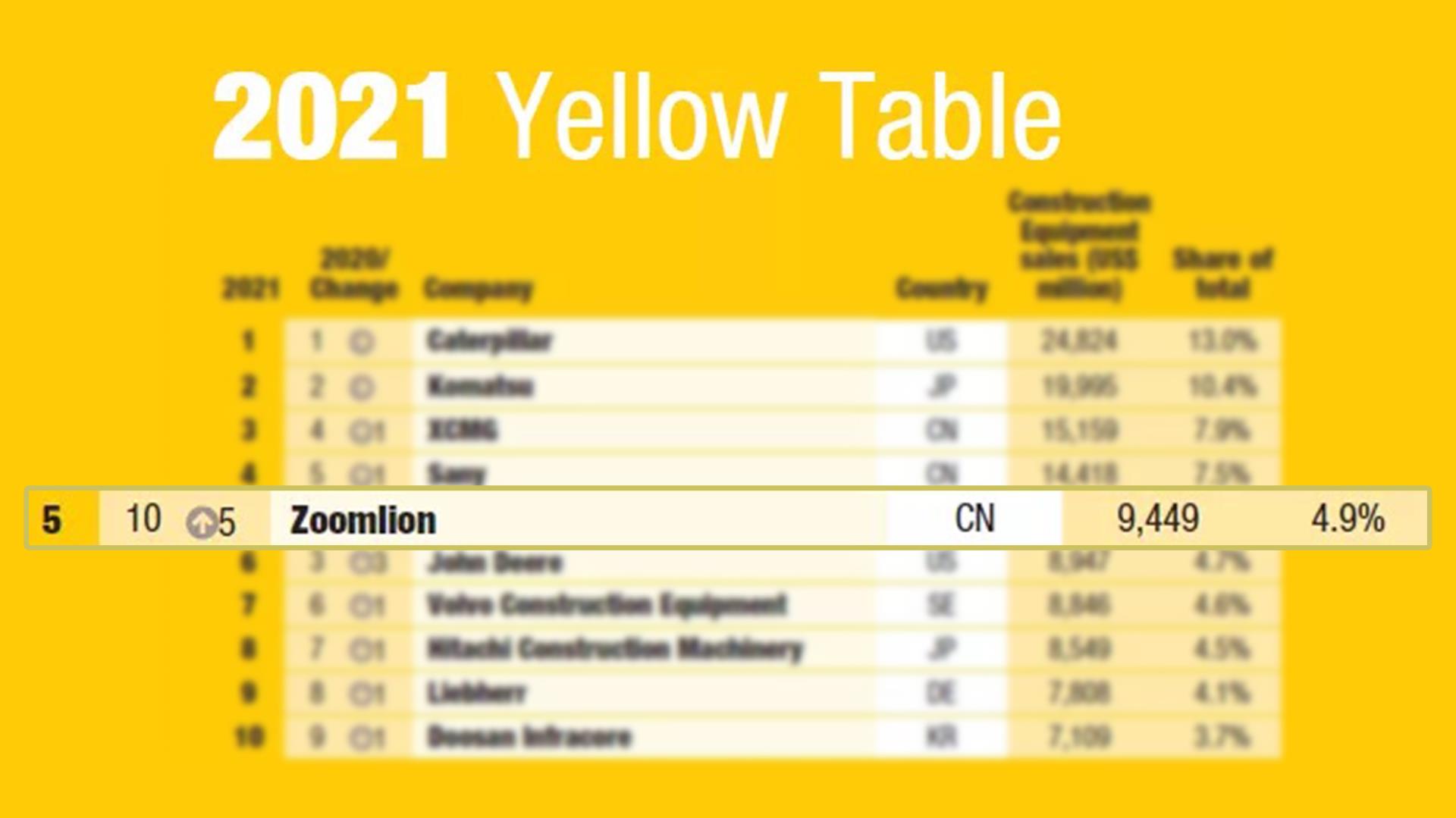 △中聯(lián)重科位列2021 Yellow Table?全球前五強(qiáng)