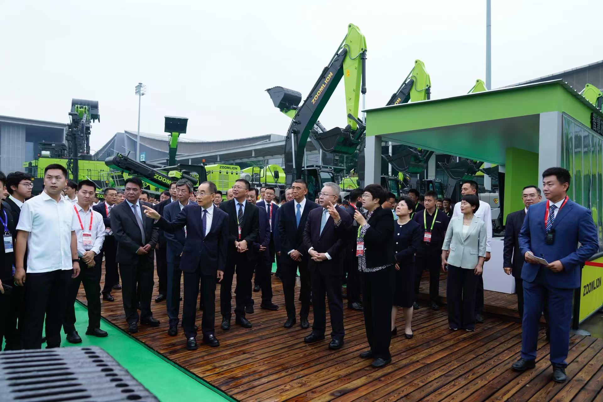 Δ中聯(lián)重科黨委書記、董事長、CEO詹純新陪同湖南省委書記沈曉明參觀中聯(lián)重科展區(qū)