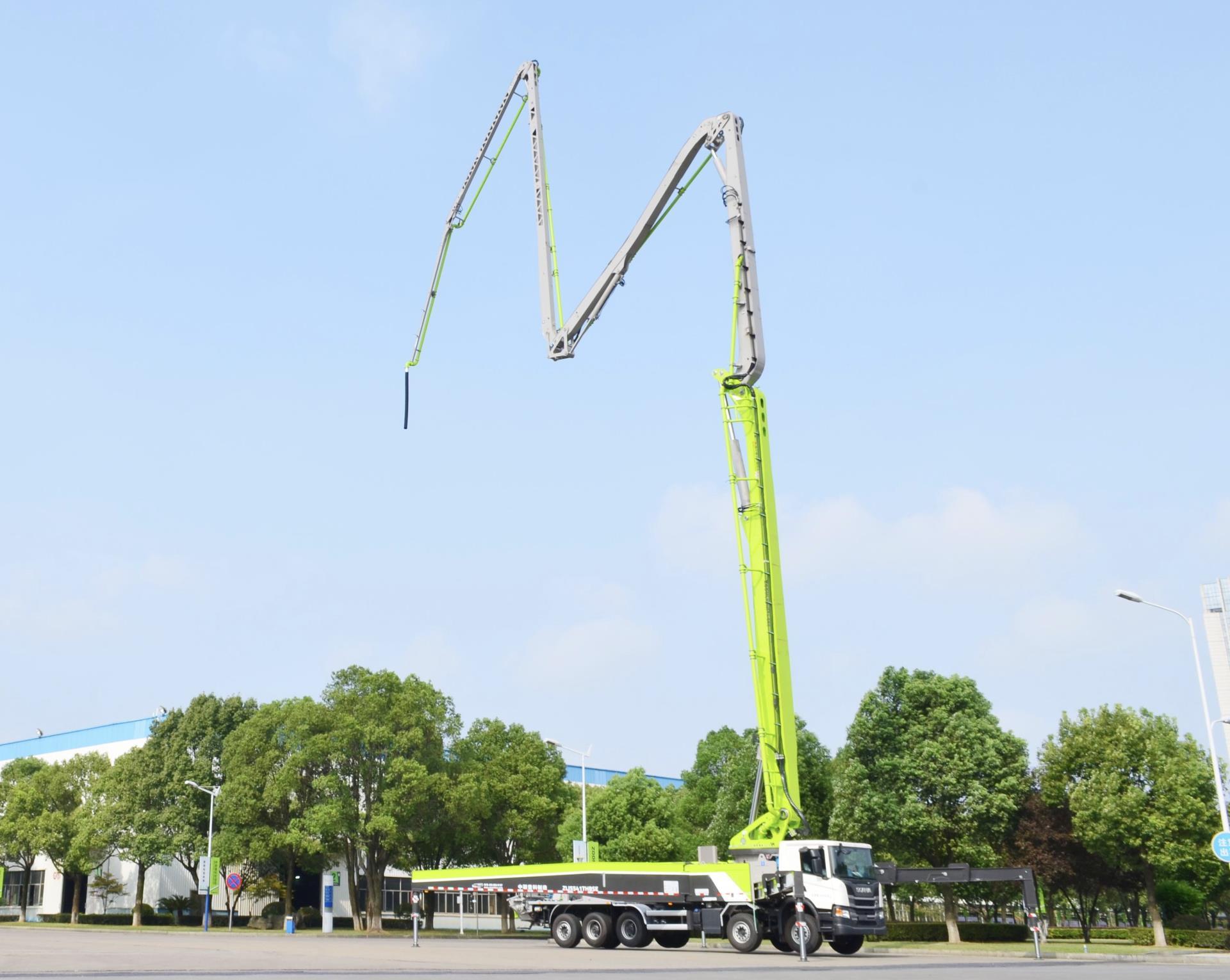 ▲中聯(lián)重科5橋67米泵車新品,臂架采用鏤空設(shè)計(jì)