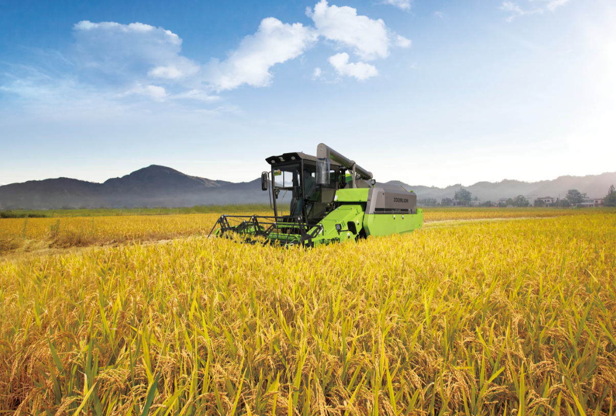 ▲中聯(lián)重科智慧農(nóng)機(jī)收獲水稻