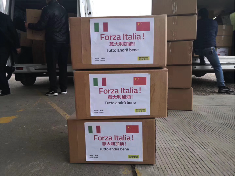 ? ?五天前,湖南省委省政府調(diào)撥中聯(lián)重科向意大利捐贈(zèng)的5萬(wàn)只口罩從長(zhǎng)沙出發(fā),并火速發(fā)運(yùn)至意大利,捐贈(zèng)給了意大利倫巴**大區(qū)負(fù)責(zé)應(yīng)急物資調(diào)配的部門,馳援當(dāng)?shù)蒯t(yī)療一線,為他們抗擊疫情提供了及時(shí)的幫助。