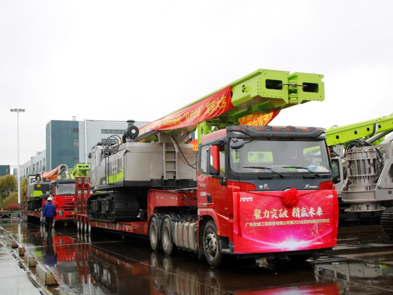 中國工程機械工業(yè)協(xié)會樁工機械分會秘書長黃志明,廣東宏盛工程裝備有限公司總經(jīng)理陳凱強、副總經(jīng)理敖荊,上海中聯(lián)重科樁工機械有限公司常務副總經(jīng)理陳剛,上海中聯(lián)重科樁工機械有限公司副總經(jīng)理張良及員工代表共同見證了這一重要時刻。