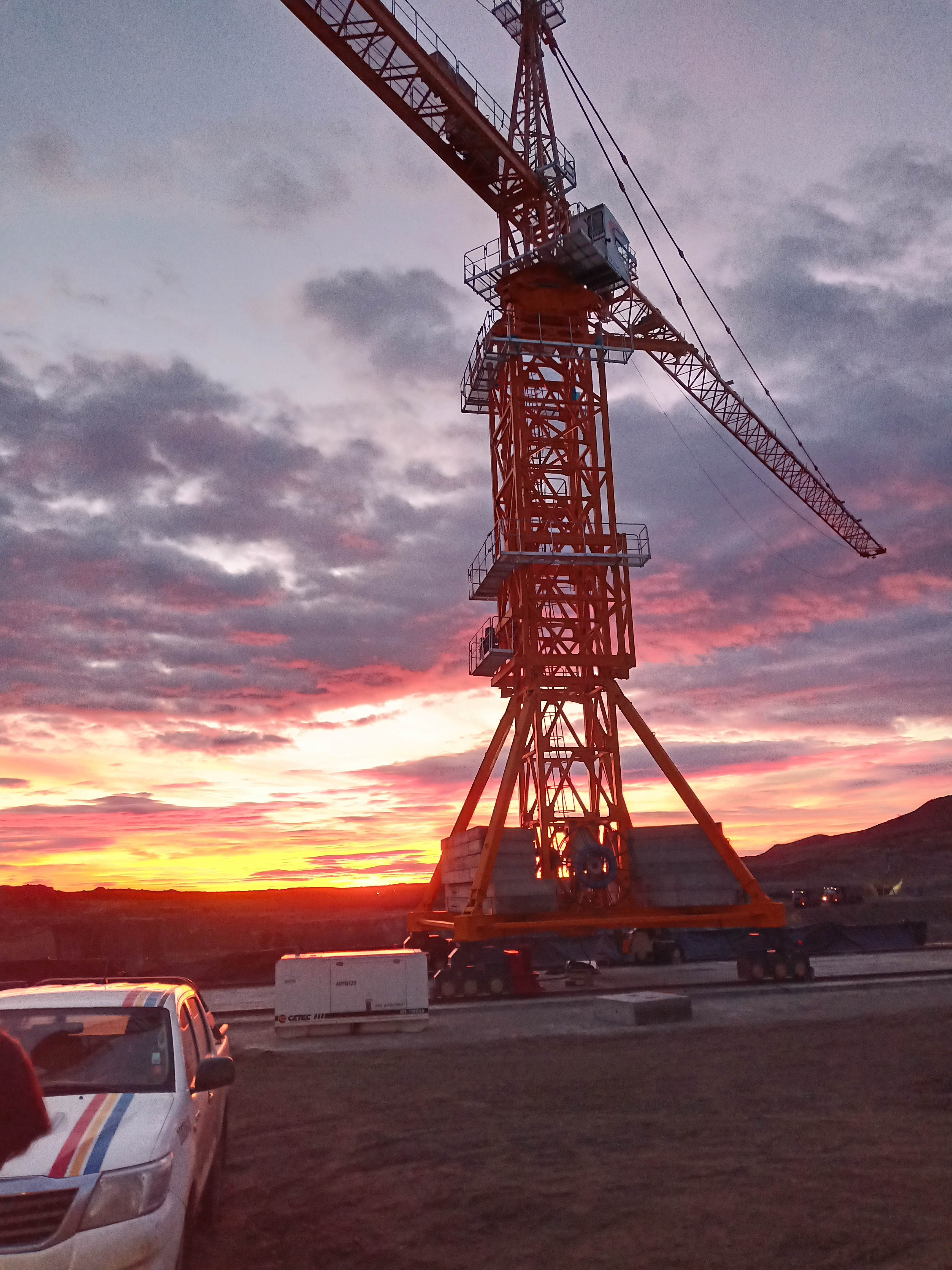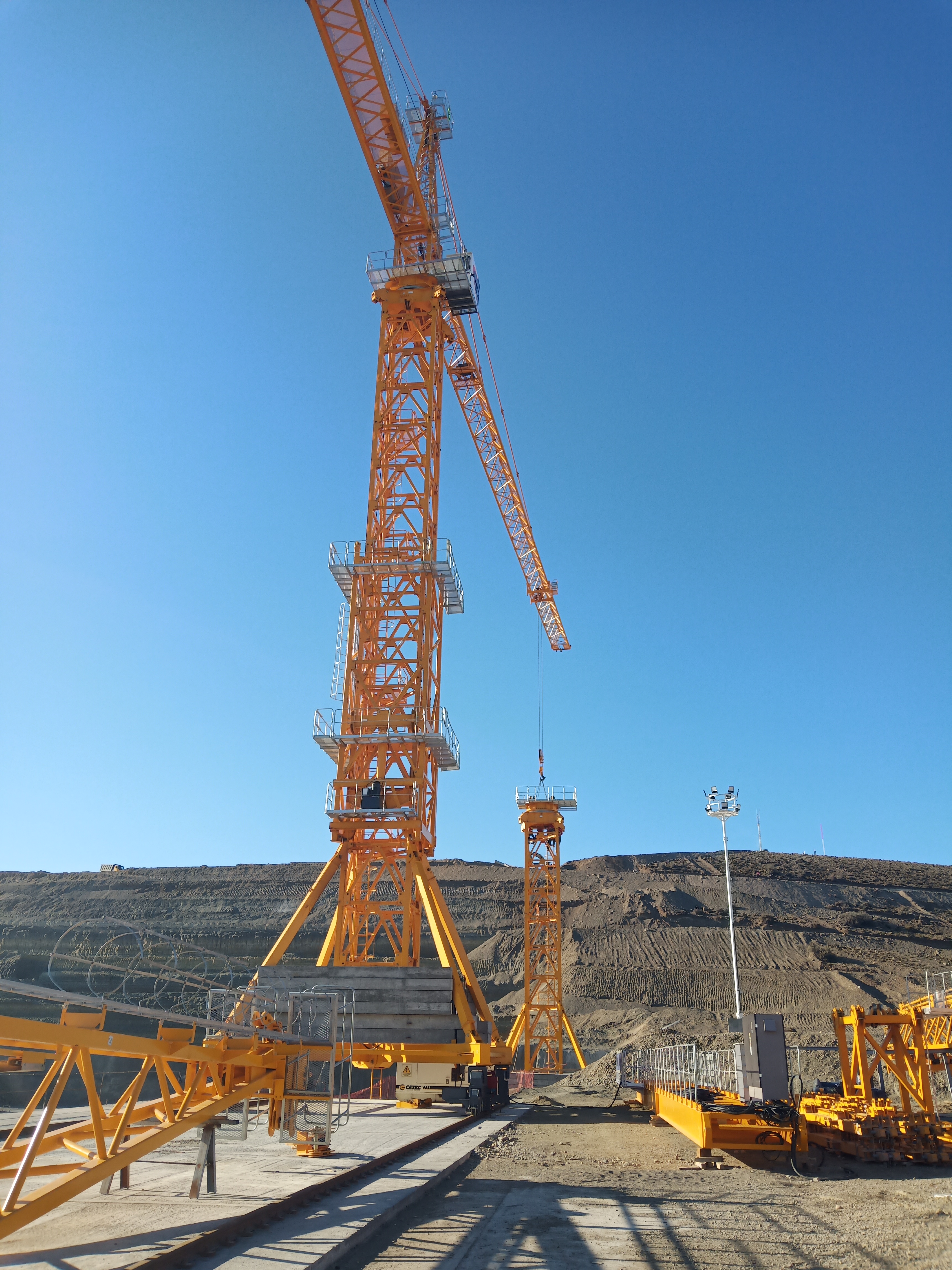 ▲中聯(lián)重科塔機(jī)在阿根廷**南端水電站項(xiàng)目施工現(xiàn)場(chǎng)