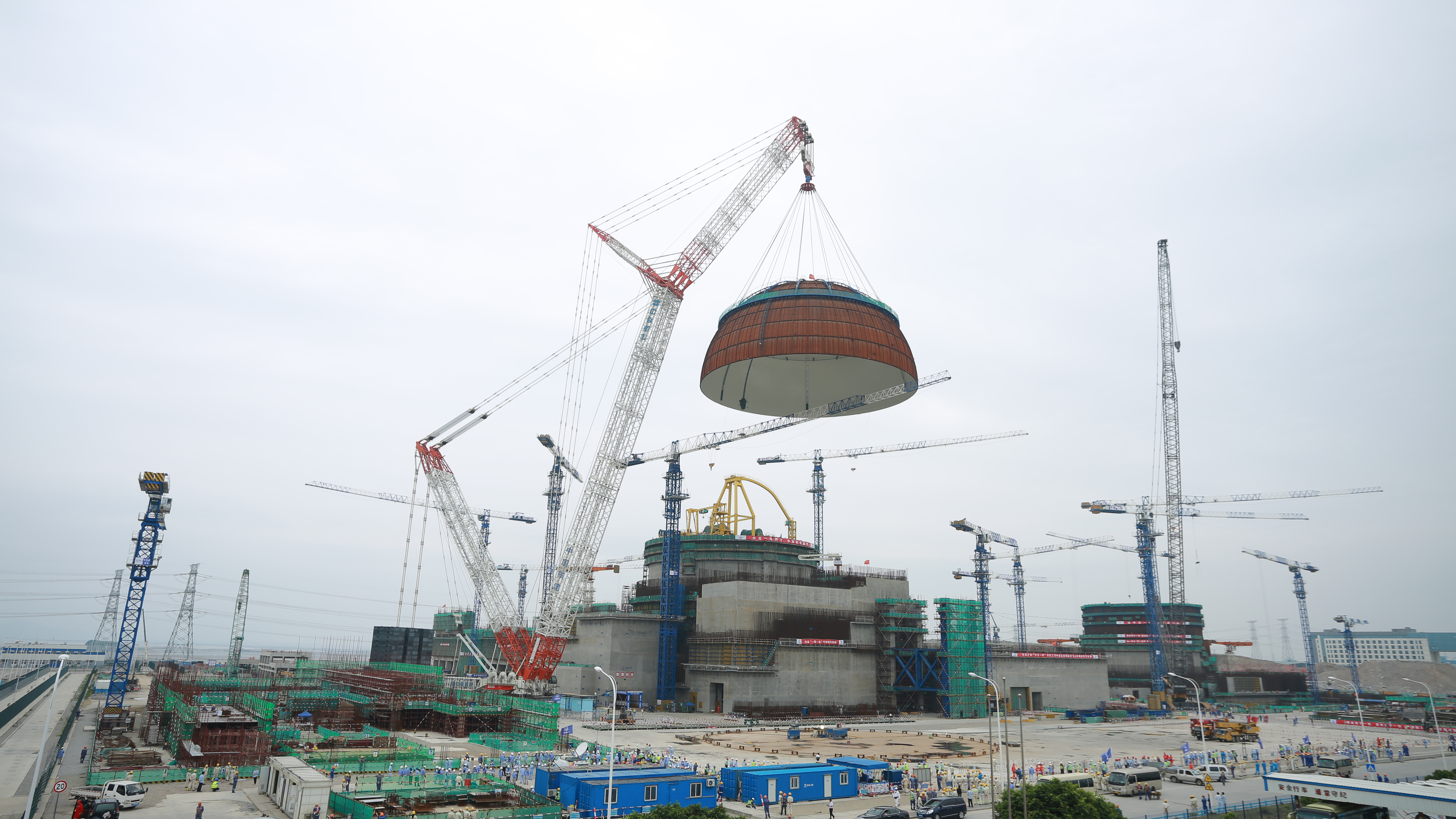 △2017年,中聯(lián)重科3200噸履帶式起重機吊裝“華龍一號”5號機組穹頂