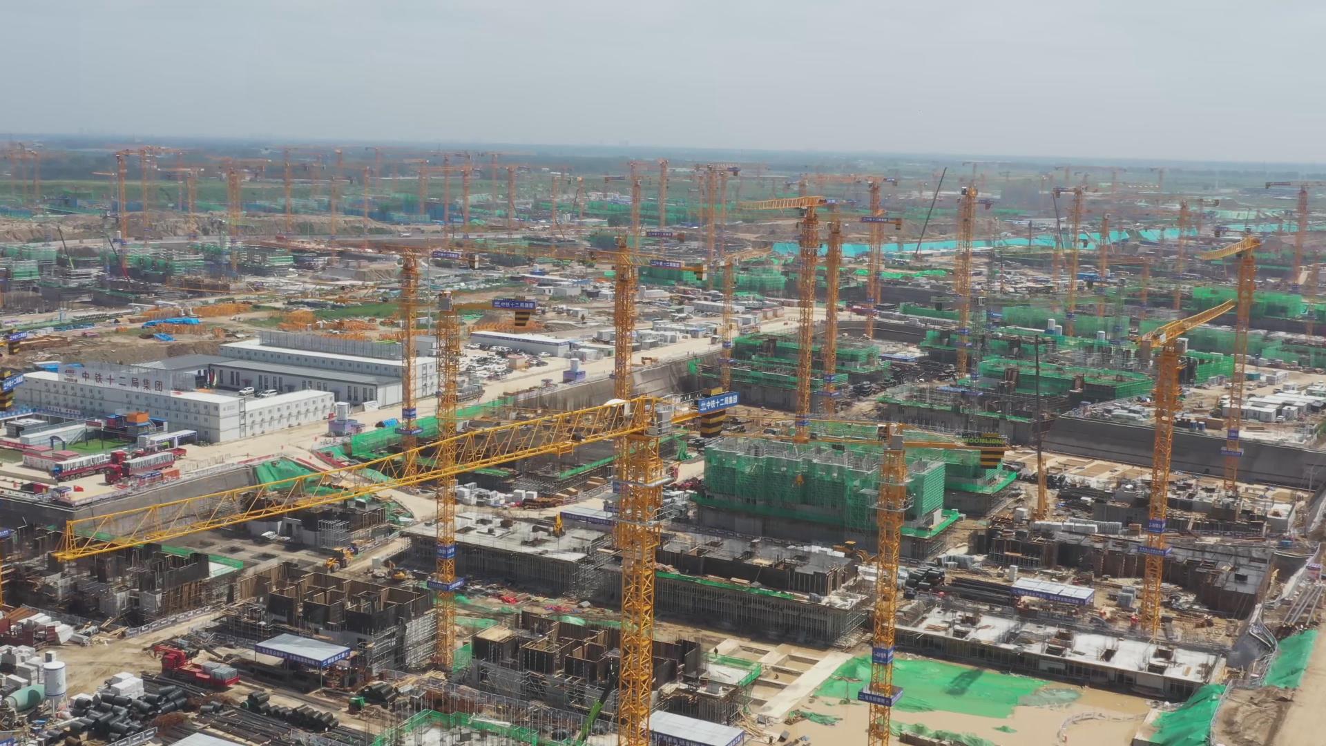 △雄安新區(qū)建設(shè)現(xiàn)場(chǎng)中聯(lián)重科塔機(jī)林立,蔚為壯觀