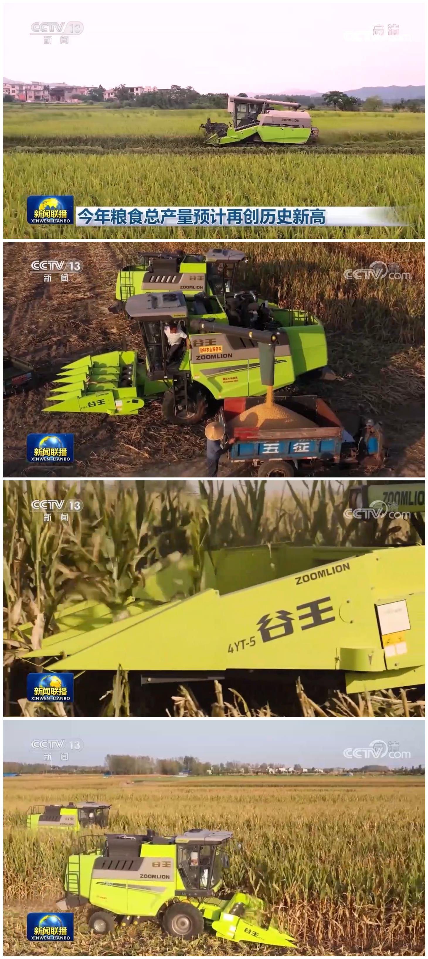 10月28日,中央電視臺(tái)《新聞聯(lián)播》播出了“今年糧食總產(chǎn)量預(yù)計(jì)再創(chuàng)歷史新高”的主題報(bào)道,聚焦農(nóng)業(yè)農(nóng)村部發(fā)布秋糧收獲接近九成,豐收已成定局,預(yù)計(jì)全年糧食總產(chǎn)量再創(chuàng)歷史新高,連續(xù)6年保持在1.3萬億斤以上。重點(diǎn)展示了中聯(lián)重科農(nóng)機(jī)產(chǎn)品在田間作業(yè)的工作畫面,一派豐收景象。