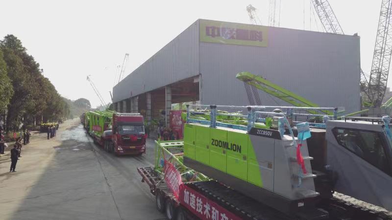 △2月18日,中聯(lián)重科開門紅當(dāng)天,十余臺履帶起重機明星產(chǎn)品起運發(fā)往全球