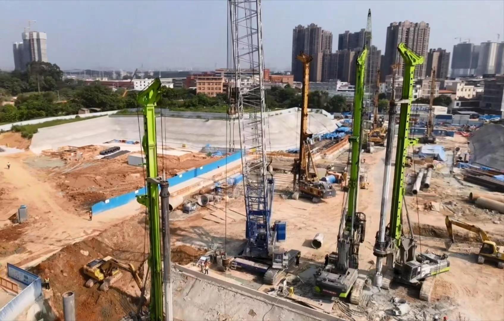 先建地上火車站,再挖地下軌道交通線。在廣州“增城火車站綜合交通樞紐配套城市軌道交通車站土建預(yù)留工程”施工現(xiàn)場,中聯(lián)重科的旋挖鉆機和全回轉(zhuǎn)鉆機正用新工法助力項目建設(shè)。這種工法可以在不影響地表火車正常運行的情況下,進行地下建筑的建設(shè),極大程度消除了建設(shè)施工對人們高鐵出行造成的不便。
