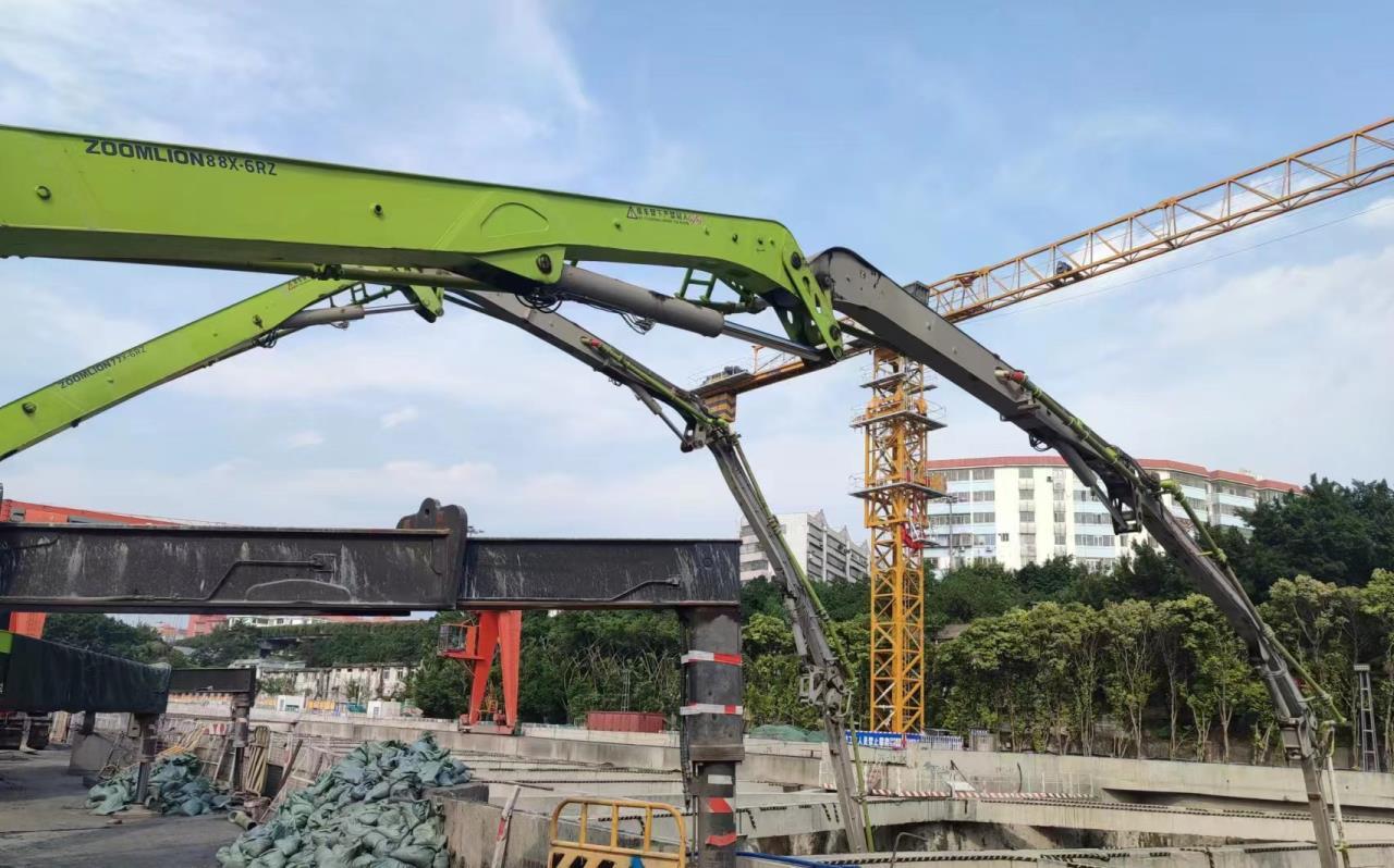 作為廣州地鐵集團(tuán)“總部級”風(fēng)險重點(diǎn)管控點(diǎn)之一,該站共需澆筑混凝土約10萬方,為確保施工質(zhì)量和施工進(jìn)度,同時嚴(yán)格落實風(fēng)險管控,項目方選用了中聯(lián)重科“凌云”系列67米、59米長臂架泵車承擔(dān)任務(wù)。