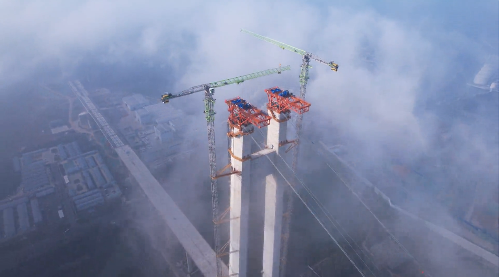 ▲中聯(lián)重科塔機(jī)在仙新路過江通道項(xiàng)目現(xiàn)場(圖片來源于新華日報(bào))