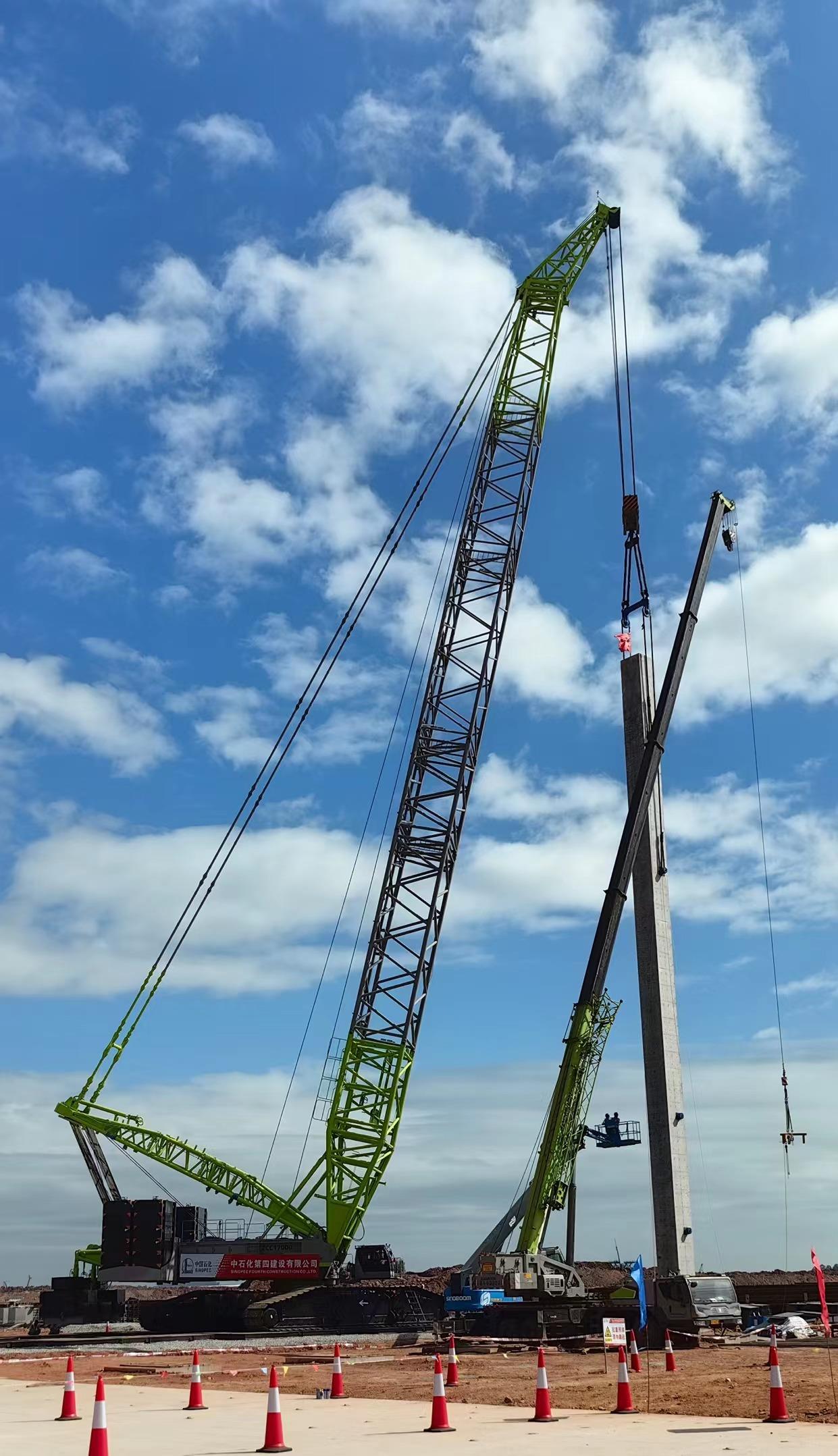 此次吊裝的亞洲**大立體庫預(yù)制柱高達39.65米,重達245噸,由于預(yù)制混凝土柱具備一定高度和直徑,選用帶風(fēng)電臂的工況能較好地完成吊裝任務(wù),同時保證一定的抗桿距離和吊裝高度,項目方經(jīng)過考量,選用了性能**為合適的ZCC17000履帶起重機。中聯(lián)重科技術(shù)服務(wù)團隊對設(shè)備進場路線進行了精準(zhǔn)勘察,對各項專業(yè)人員進行安全、質(zhì)量技術(shù)交底,對施工方案、吊點、起重索具、吊車機械等項目安全確認(rèn),并提前做好設(shè)備站位區(qū)域地基處理、障礙物清理以及施工協(xié)調(diào)等準(zhǔn)備工作,為設(shè)備的成功吊裝提供了堅實保障。