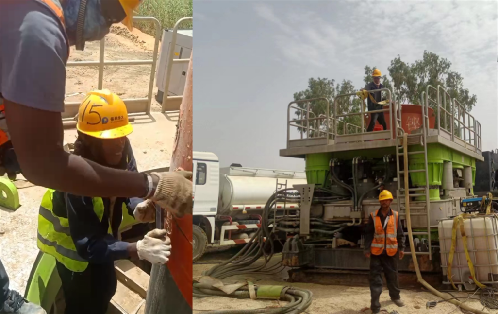 自設(shè)備今年2月進(jìn)場(chǎng)以來(lái),中聯(lián)重科服務(wù)團(tuán)隊(duì)迅速完成了對(duì)當(dāng)?shù)厥┕と藛T的操作培訓(xùn),確保非洲工人能熟練使用全回轉(zhuǎn)鉆機(jī)?!胺侵尥菩械臍W標(biāo)禁止使用化學(xué)泥漿,全護(hù)筒工藝在這里用的很多,這次使用的全回轉(zhuǎn)鉆機(jī)ZRT260H,應(yīng)客戶要求打了根實(shí)驗(yàn)樁,下了55米護(hù)筒,樁深52米,由履帶吊快放取土成孔。客戶評(píng)價(jià)機(jī)器有勁,施工穩(wěn)定,護(hù)筒下的深,完全符合他們的預(yù)期?!敝新?lián)重科非洲駐點(diǎn)服務(wù)工程師佟兵介紹說(shuō)。