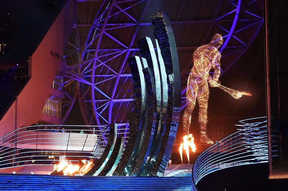 △9月23日,數(shù)字火炬手在點燃主火炬(圖片來源:新華社)