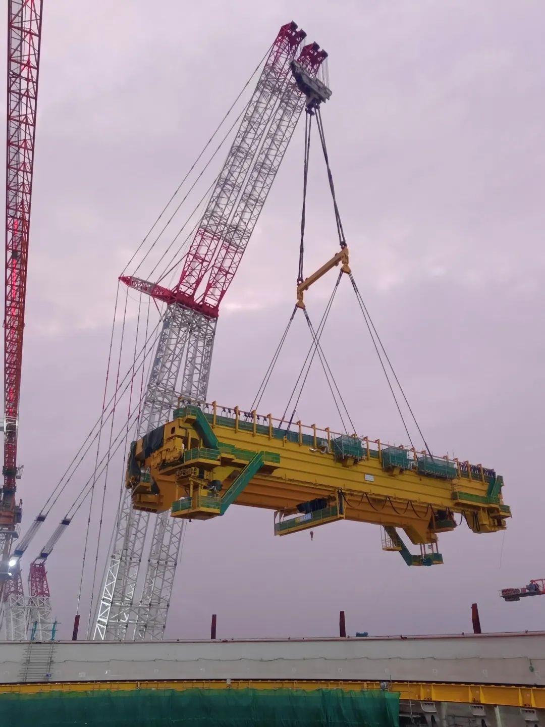 ▲中聯(lián)重科起重機(jī)正在進(jìn)行昌江核電4號(hào)機(jī)組環(huán)吊橋架整體吊裝(圖片源于“華能昌江核電”公眾號(hào))