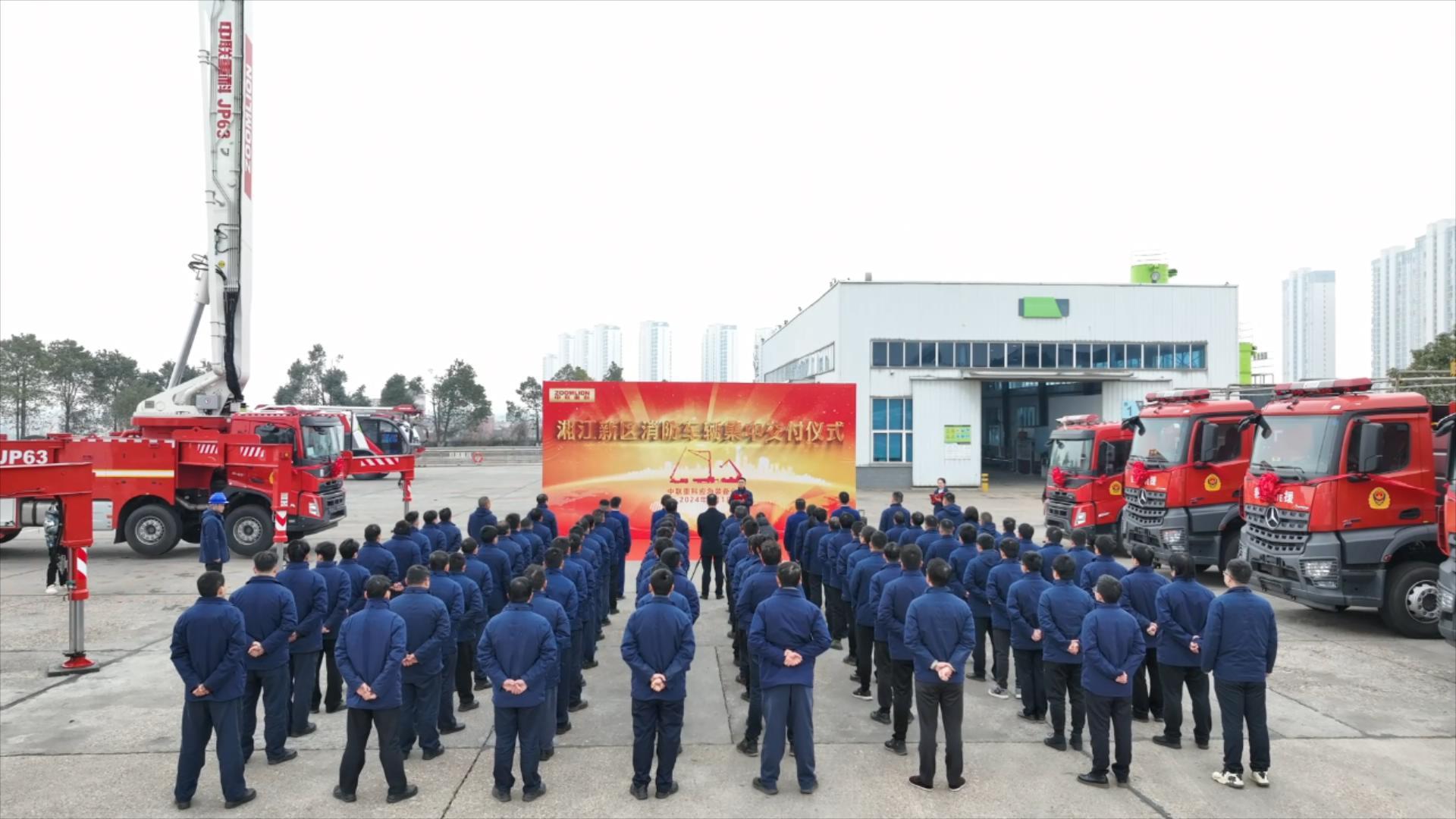 △中聯(lián)重科消防車集中交付湖南湘江新區(qū)