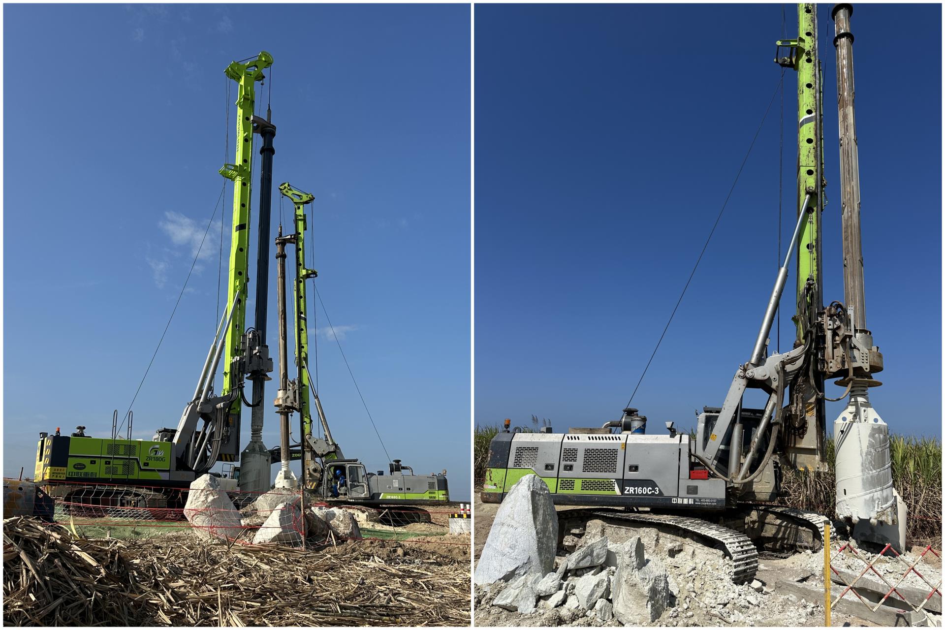 據(jù)項目負責人介紹,海南當?shù)氐貙訌碗s多變,巖層高低不等,普通旋挖鉆機設備施工困難重重,遇到砂土層極易出現(xiàn)塌孔,遇到中風化花崗巖層,截齒消耗較大,還容易出現(xiàn)取巖芯困難的問題。中聯(lián)重科ZR180G旋挖鉆機具備高穩(wěn)定、高效率、高精準的施工特點,可實現(xiàn)一次性成孔,高度契合該項目需求,對比同類產(chǎn)品施工表現(xiàn)更出色。