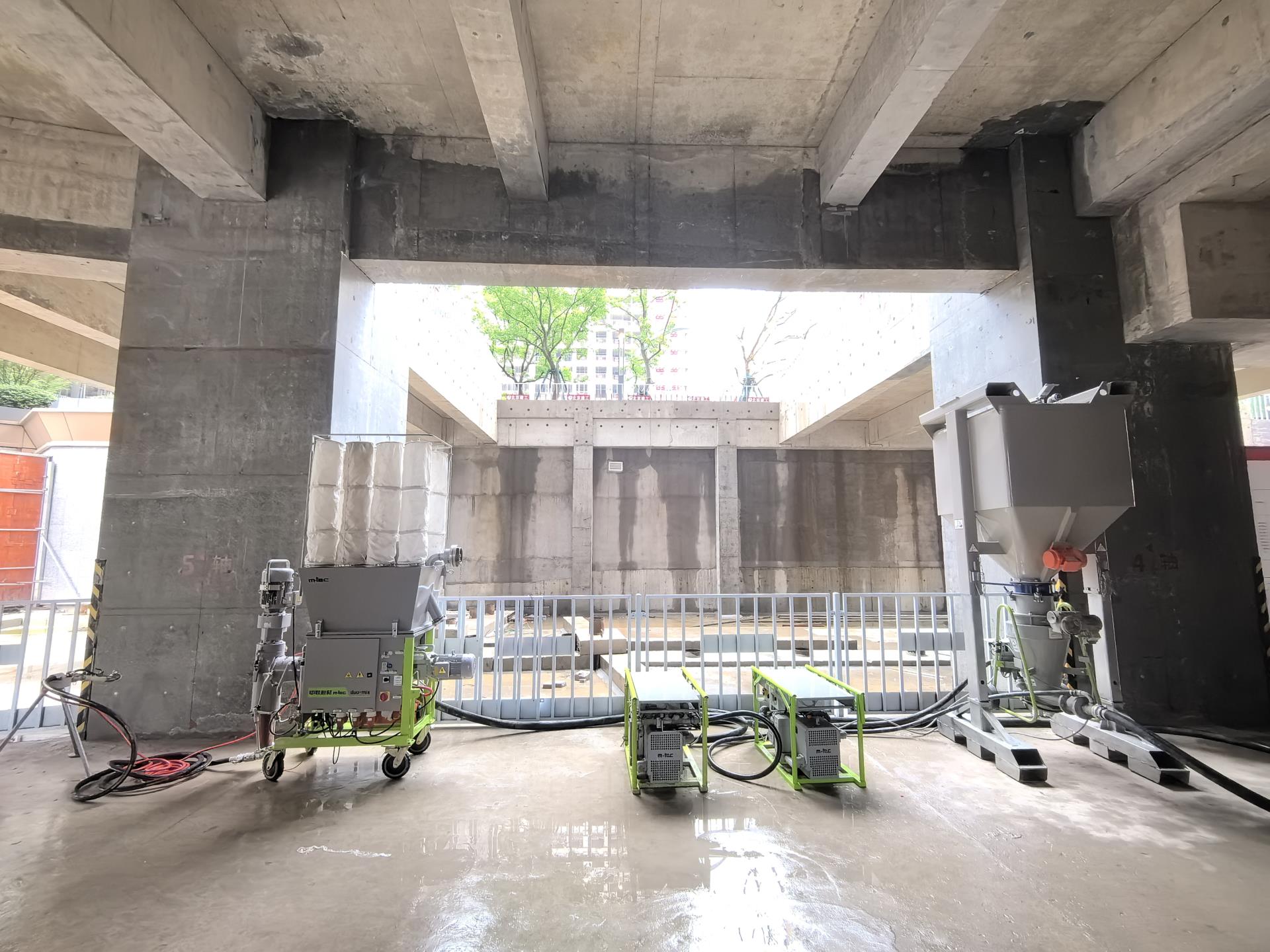 據(jù)介紹,中聯(lián)重科為項(xiàng)目量身打造的墻面機(jī)械化施工解決方案——“可機(jī)施水泥基輕質(zhì)抹灰砂漿+GDP/Duomix+機(jī)械化施工的新工藝工法”,在多環(huán)節(jié)運(yùn)用傳感器聯(lián)動(dòng),實(shí)現(xiàn)了“智能化運(yùn)作,一鍵啟?!?,施工現(xiàn)場(chǎng)無(wú)粉塵排放,無(wú)干粉濕漿落地,無(wú)需清洗輸送管道,具有安全、高效、綠色環(huán)保等顯著優(yōu)勢(shì)。