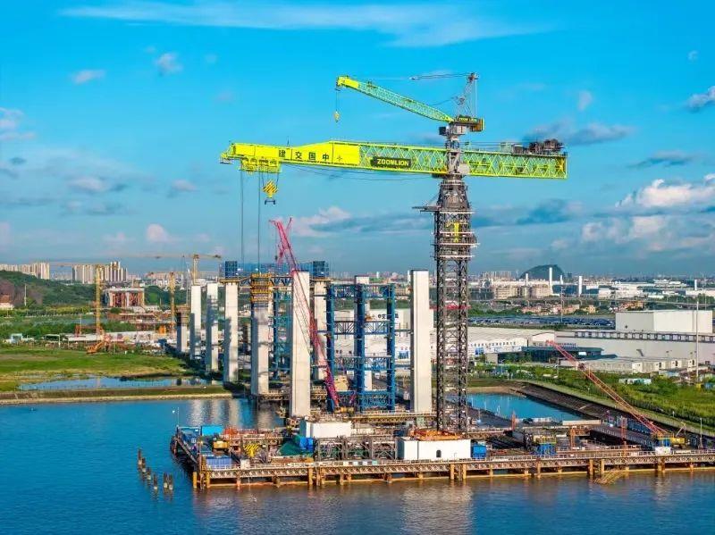 ▲中聯(lián)重科全球**大塔機(jī)佇立獅子洋大橋建設(shè)現(xiàn)場(chǎng)(圖片來(lái)源于公眾號(hào)“廣東交通”)