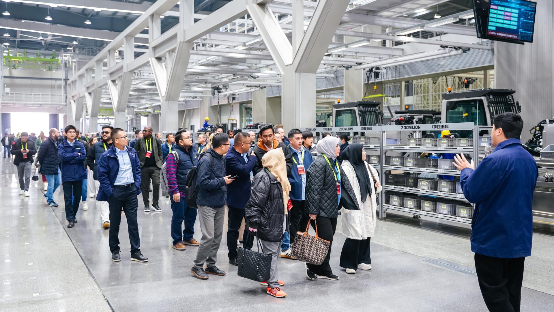 期間,海外客戶參觀了中聯(lián)智慧產(chǎn)業(yè)城土方機械園、高空機械園、起重機械園和混凝土泵送機械園等四大全球領先的智造園區(qū),觀摩了緊湊型設備聯(lián)合施工、綠色無人裝備演示。近距離親身感受,讓活動嘉賓對中聯(lián)重科引領行業(yè)的智造成果和智能化、綠色化水平贊嘆不已。