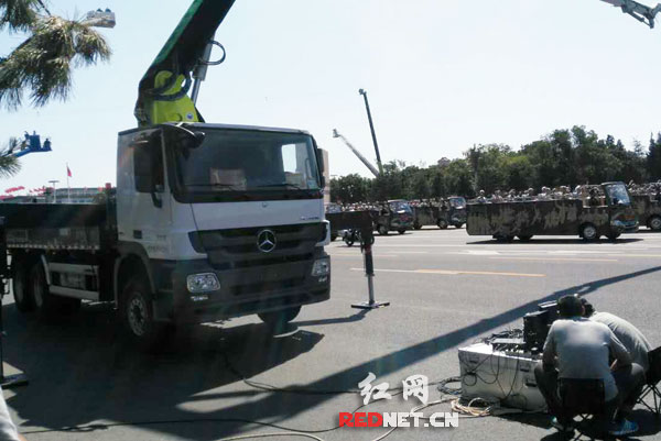 (中聯(lián)重科33米泵車在大閱兵拍攝現(xiàn)場。)