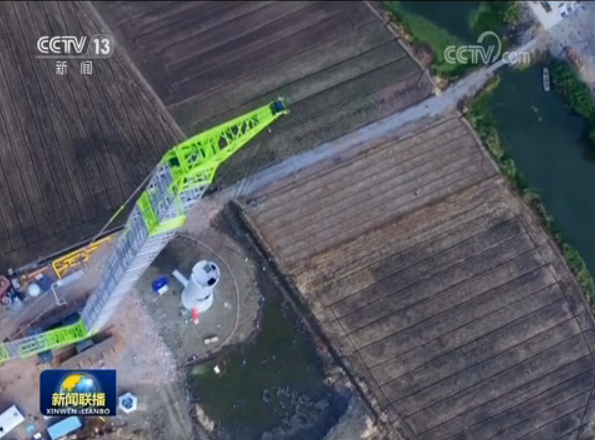 ▲央視新聞聯(lián)播報(bào)道截圖:正在吊裝作業(yè)的中聯(lián)重科履帶吊