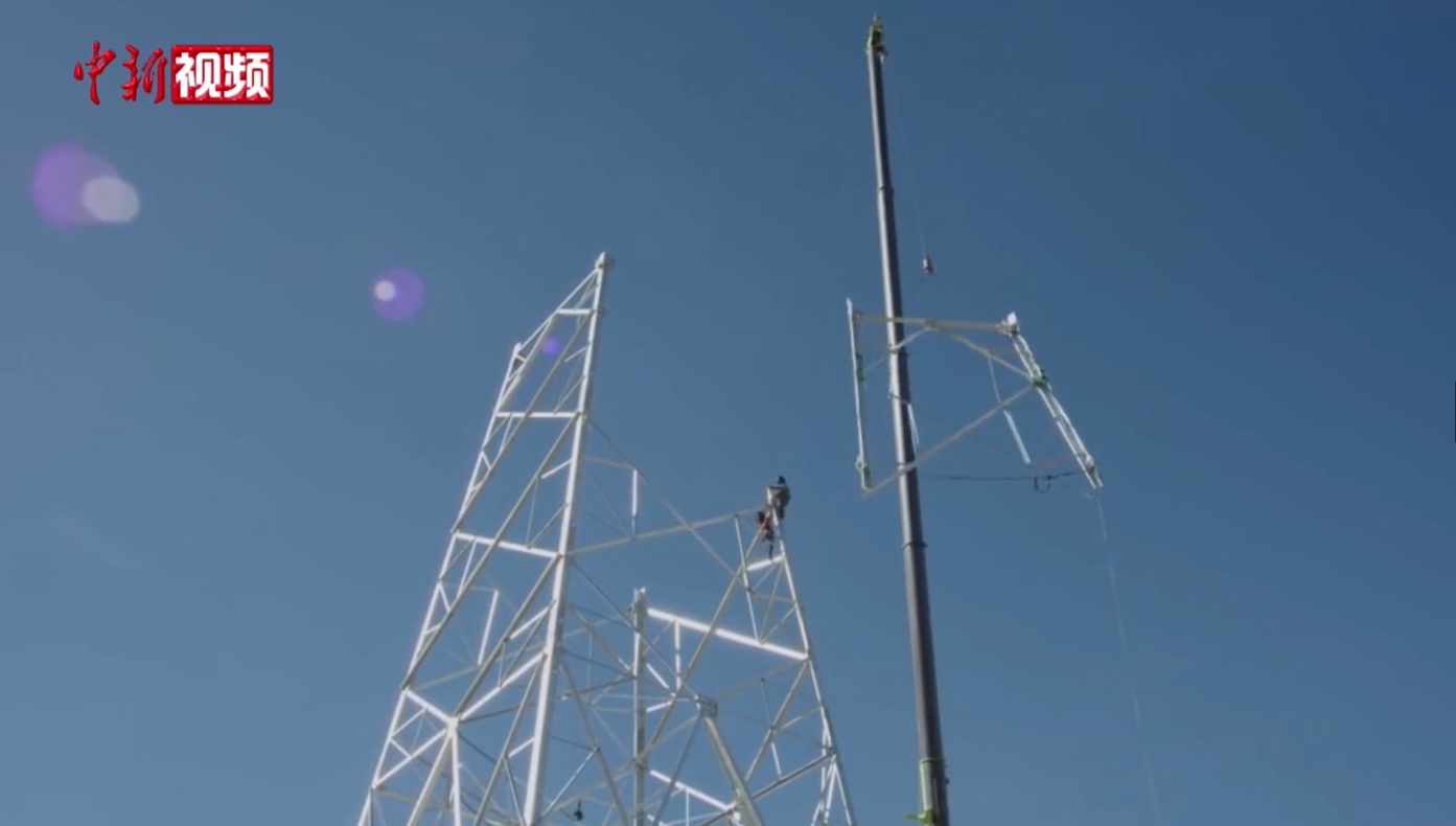 △四川省甘孜州巴塘縣德達鄉(xiāng)色烔瑪山上的金上—湖北特高壓工程鐵塔(圖片來源:央視新聞)