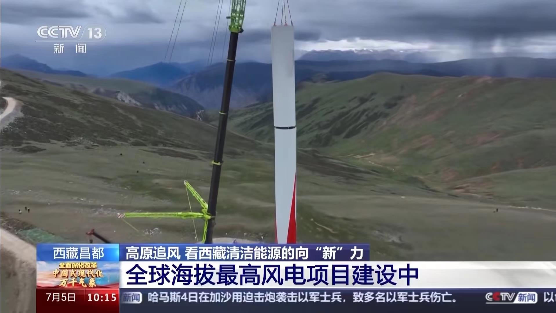 世界屋脊之上,極光綠與風(fēng)機(jī)白并肩傲立,助力點(diǎn)亮萬家燈火。近日,央視新聞?lì)l道關(guān)注西藏昌都全球海拔**高風(fēng)電項(xiàng)目建設(shè),畫面中,中聯(lián)重科全地面起重機(jī)作為主力設(shè)備,順利吊裝項(xiàng)目首臺(tái)風(fēng)機(jī),這一重要時(shí)刻也標(biāo)志著工程建設(shè)邁入新的里程碑。