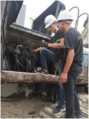 ??? 近日,基礎施工華南大區(qū)小分隊繼服務萬里行首站告捷后,迅速從廈門出發(fā),前往100公里以外的晉江項目地點。中聯(lián)重科極光綠設備在工地上格外耀眼,小分隊成員遠在方圓百米外就已看到它高效施工的身影。抵達現(xiàn)場時,發(fā)現(xiàn)還有兩臺老涂裝設備依然“能量無限”,承擔著項目重任?!斑@是中聯(lián)重科2008年的旋挖鉆機ZR220A,是福建片區(qū)的**一臺旋挖鉆機,至今仍然非常好用。中聯(lián)產(chǎn)品品質真的很不錯?!?機手感慨道。