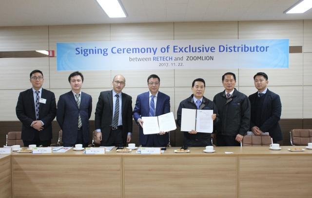 ▲中聯(lián)重科與RETECH公司共同簽署韓國(guó)ZTF250上裝代理協(xié)議。