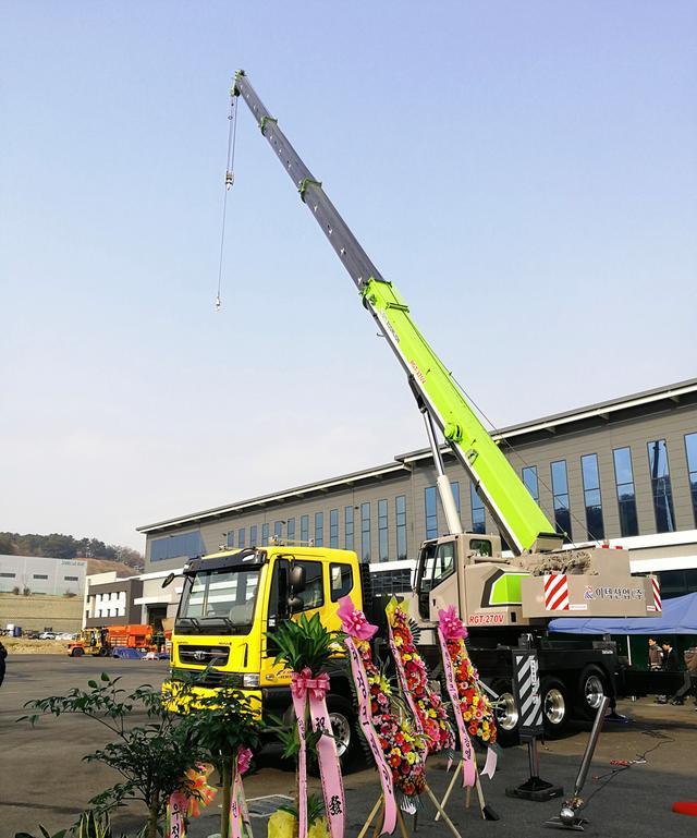 ▲搭載韓國(guó)大宇底盤的RGT-270V 25噸汽車起重機(jī)。