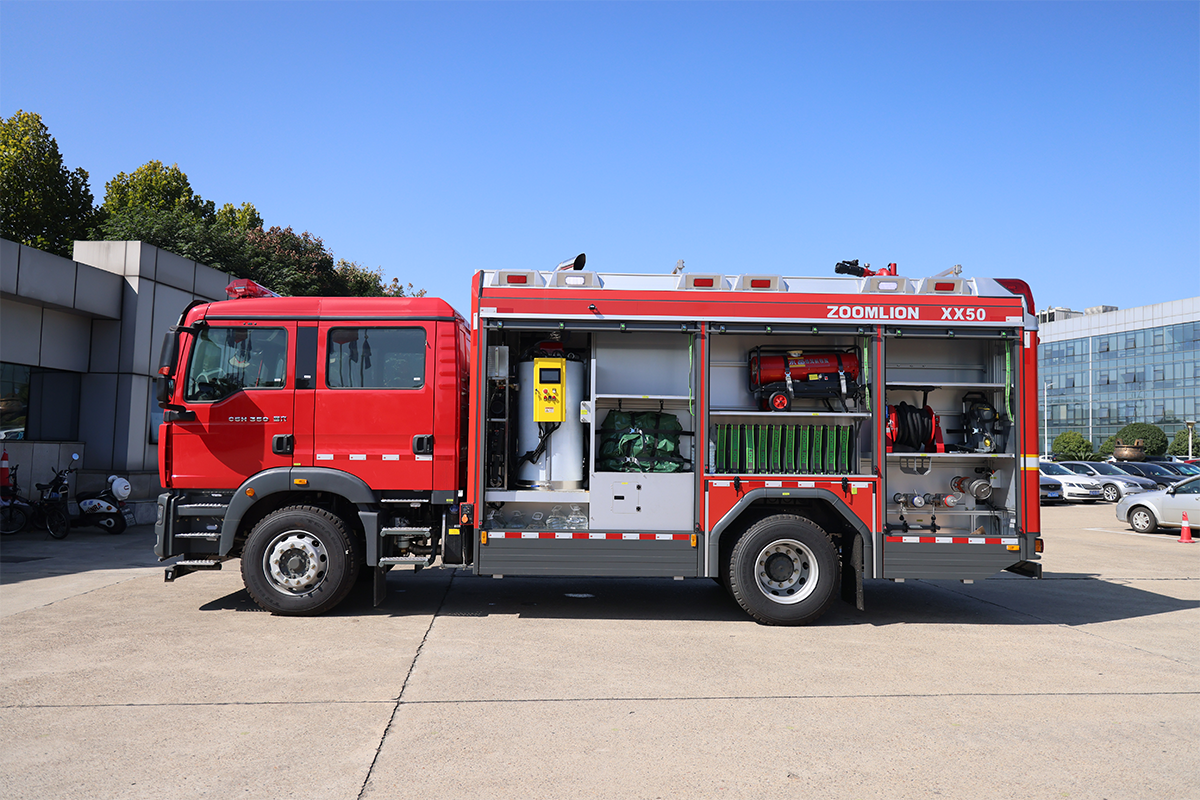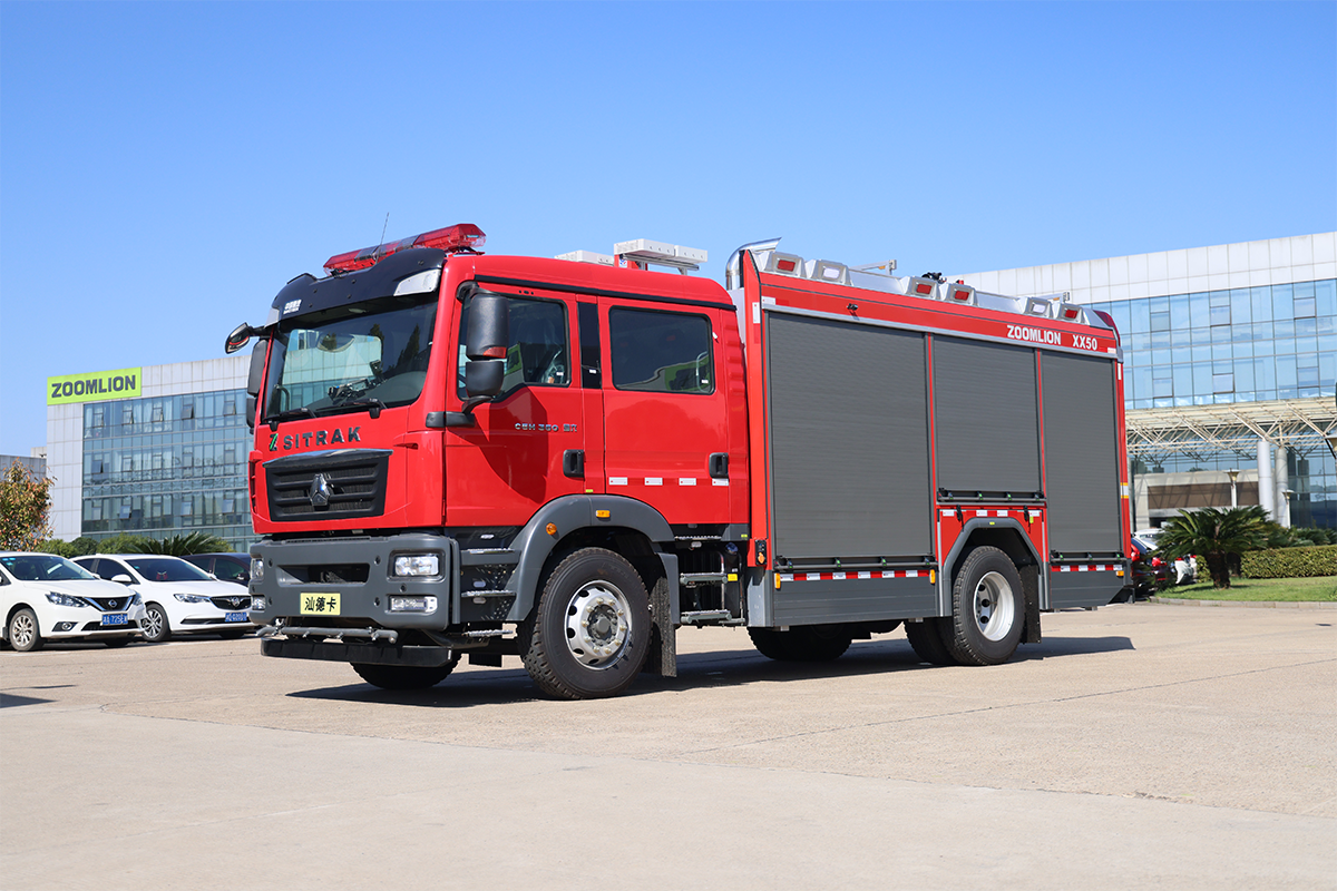 中聯(lián)牌XX50型洗消消防車,是專門針對?;鹿示仍?、被污染的人員及地面設(shè)備進(jìn)行洗消而研制的新型特種車輛。車輛集成化學(xué)洗消、消防滅火、應(yīng)急照明三大功能模塊,具備強(qiáng)大的綜合救援能力,一車多用,適用于消防應(yīng)急救援履行滅火和化學(xué)事故處理等任務(wù)。