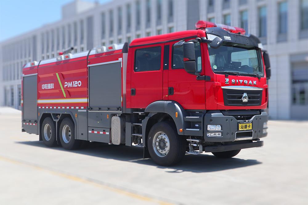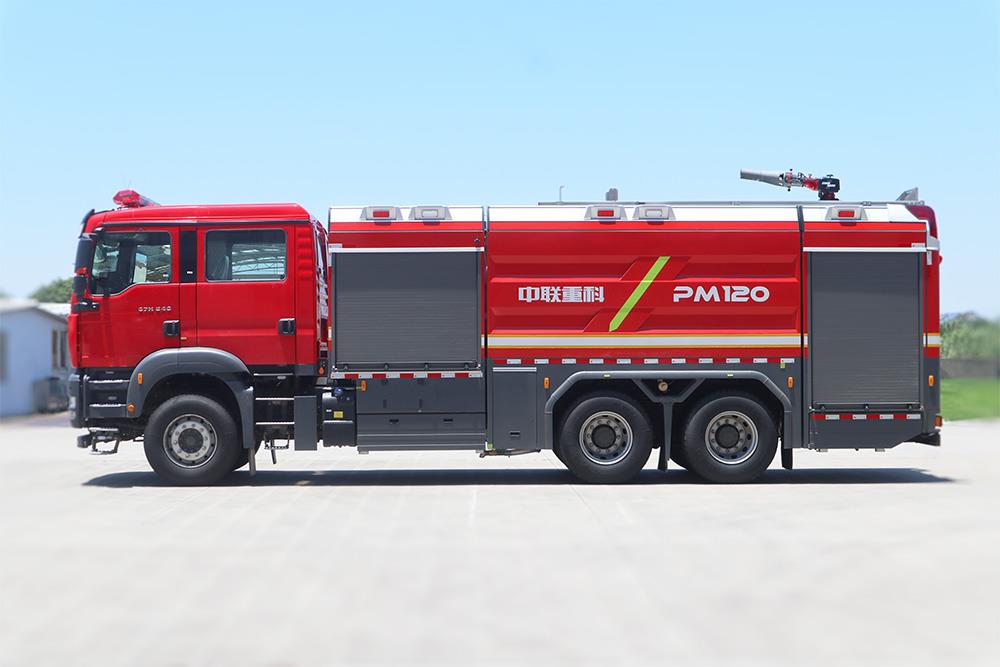 中聯牌PM120型泡沫消防車,整車載液量大,裝備常規(guī)型B類泡沫系統,適合撲救工業(yè)與民用建筑A類火災,亦可撲救石化,煤化,油庫等B類火災;全鋁合金車身,自重輕,強度高,防腐蝕性能好,可隨車攜帶多種搶險救援器材。本車輛還可進行接力供水,是城市應急救援消防隊與企業(yè)專職消防單位必備主力裝備。