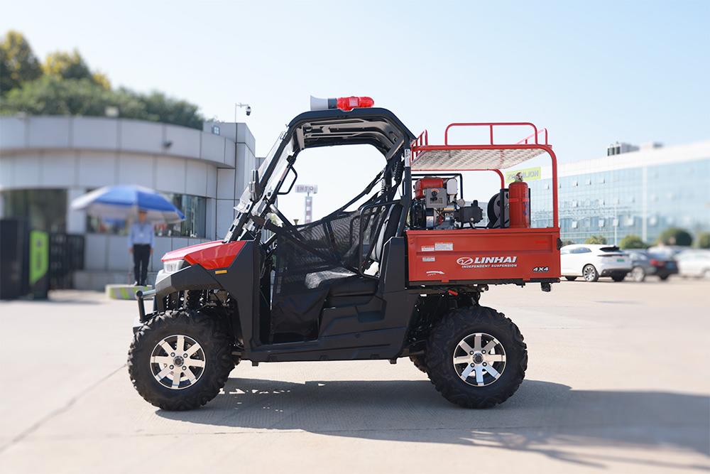 中聯重科XMC4JB/4.7-LH400U型四輪消防摩托車結合國內外的先進設計理念和消防實戰(zhàn)需要創(chuàng)新設計而成,具有多功能、高機動等特點,配備森林消防泵和細水霧滅火系統(tǒng),主要用于狹小空間或復雜地形的火災救援,其主要功能包括快速巡邏、滅火救援以及山地搜救等。