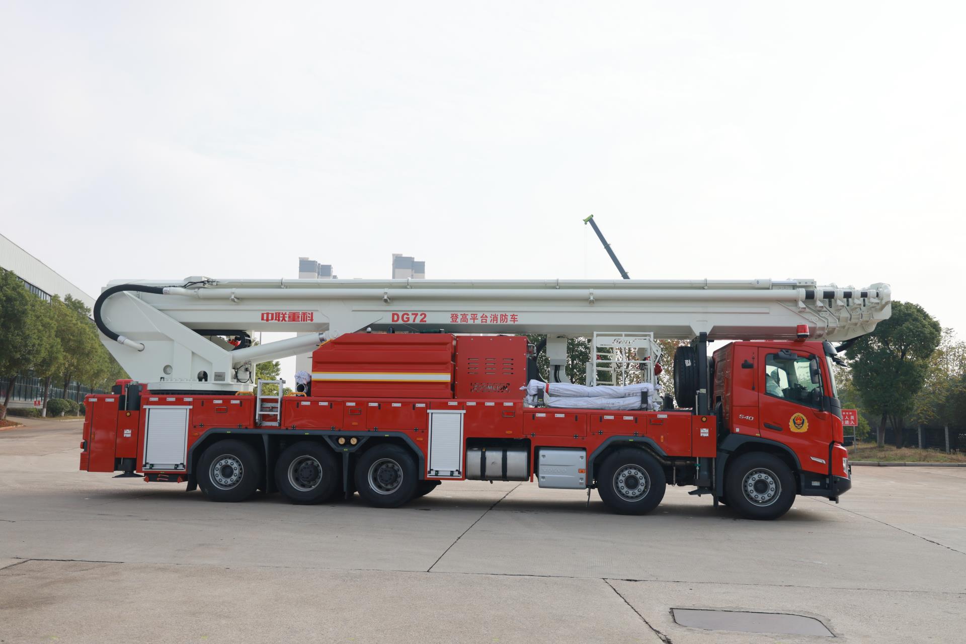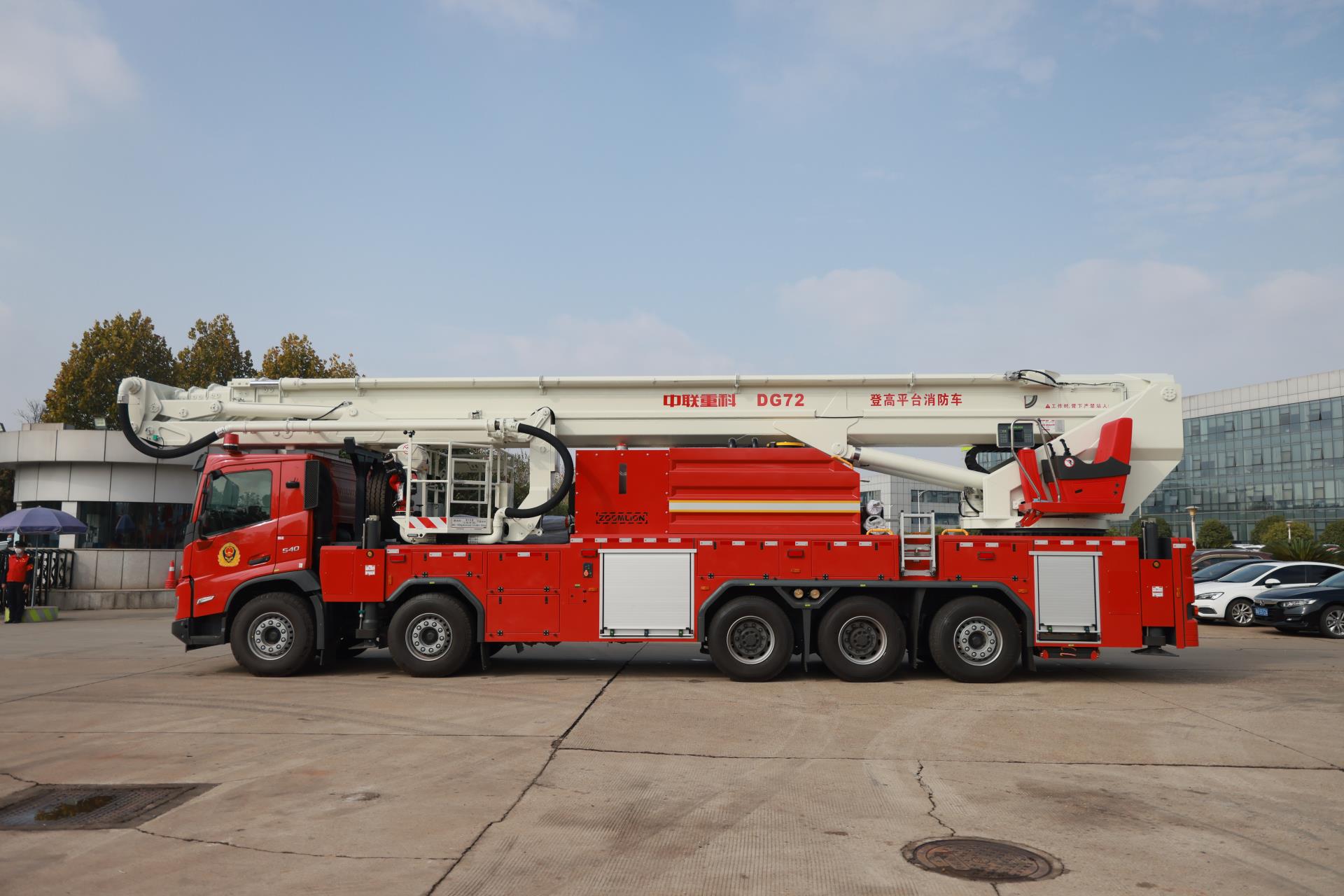 中聯(lián)牌DG72型登高平臺消防車,結(jié)合國際上消防車的先進理念和消防實戰(zhàn)經(jīng)驗創(chuàng)新設(shè)計而成,具備強大的高空救援和消防滅火能力,整車性能優(yōu)越,快速高效,操作性、安全性及智能化控制處于國內(nèi)領(lǐng)先水平。