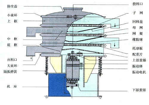 XZS系列旋振篩是在S49系列旋振篩的基礎(chǔ)上,吸收國內(nèi)外先進技術(shù),并采用先進的加工工藝而設(shè)計的高精度篩分過濾機械,它是以立式振動電機或?qū)S眉ふ衿鳛檎駝釉?,立式振動電機(或激振器)上、下端裝有偏心重錘,可產(chǎn)生水平、垂直、傾斜的三次元運動,通過調(diào)節(jié)上、下偏心重錘的相位角,改變物料在篩面上的運動軌跡以達到篩分各種物料的目的。該產(chǎn)品適用于任何粉、粒、液的篩分和過濾的行業(yè)。廣泛用于化工、醫(yī)藥粉、液、涂料、顏料、化妝品、油脂、樹脂、陶瓷漿、粘土泥漿、生石灰、耐火材料粉末,冶金粉末、電磁粉末、研磨粉、果汁、飲料、食糖、食鹽、味精、調(diào)料、奶粉、淀粉、面粉、米粉、碳粉、石墨粉、錳粉、碳酸鋰、助溶劑、滅火劑以及環(huán)保行業(yè)的污水、廢水處理的工藝過程中的篩分、過濾。
