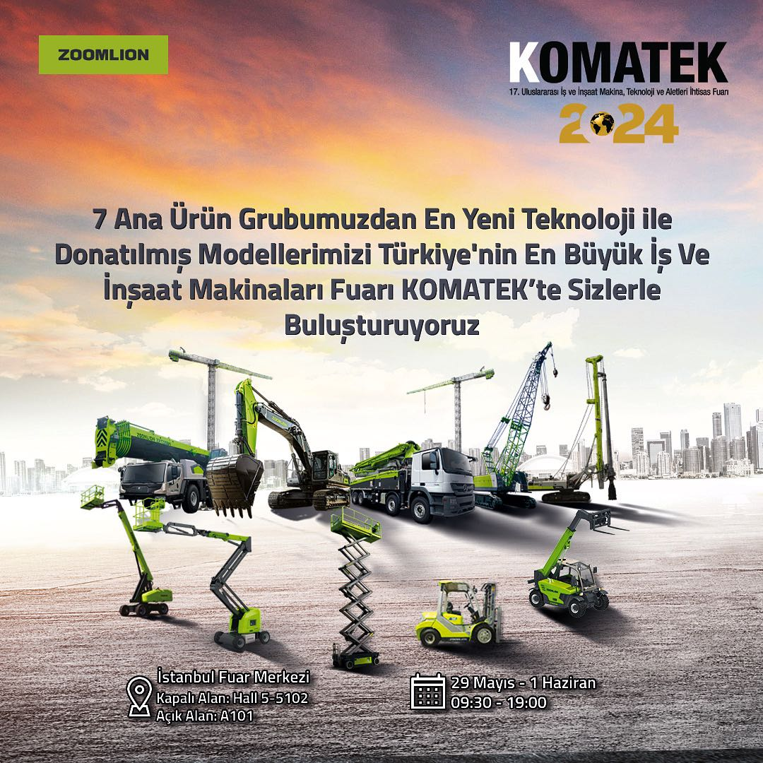 5月29日—6月1日,**17屆土耳其國際建筑機械、技術和設備貿易展覽會(以下簡稱土耳其KOMATEK展會)將在伊斯坦布爾展覽中心舉行。裝備制造龍頭企業(yè)中聯(lián)重科,將攜旗下工程起重機械、土方機械、高空作業(yè)機械、建筑起重機械、混凝土機械、基礎施工機械、工業(yè)車輛等7大類30余款產品隆重亮相。