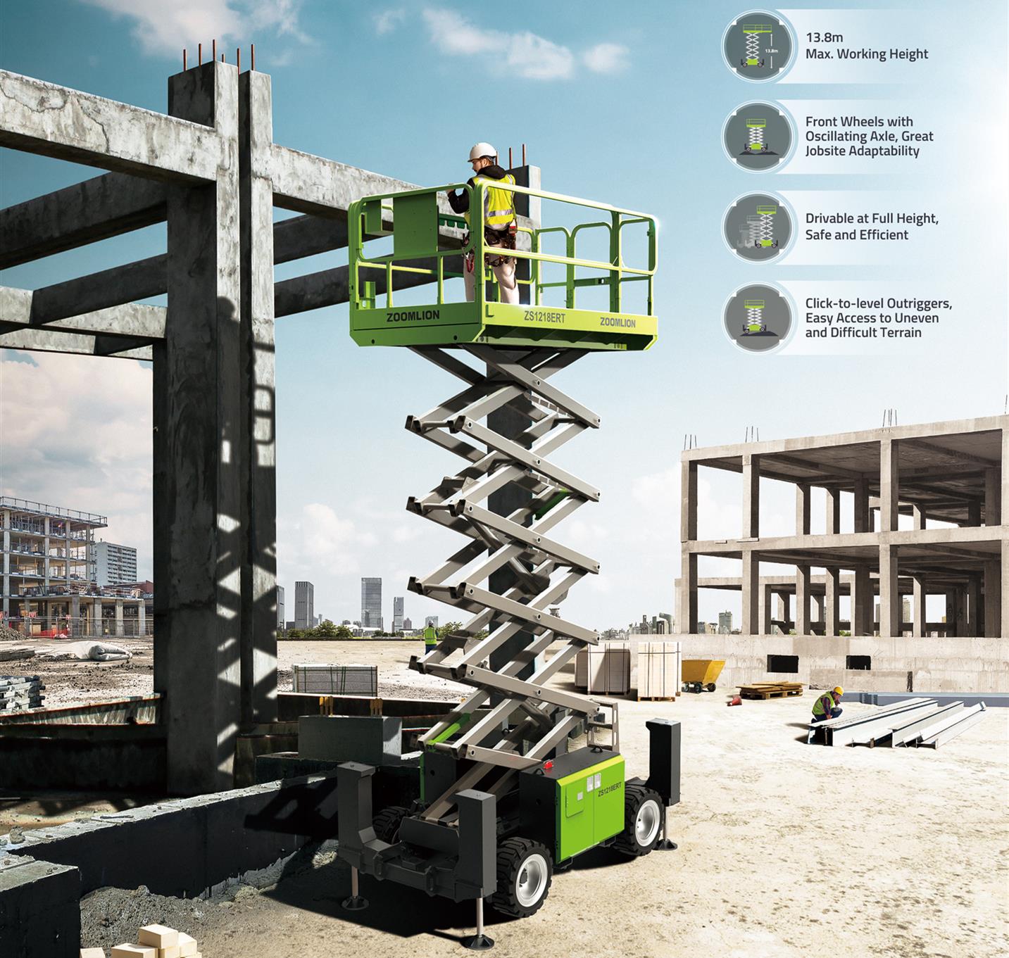 中聯(lián)重科智能高機近年來高速發(fā)展,已位列英國KHL 2023年全球高空作業(yè)機械企業(yè)排行榜**7位,此次15款高空作業(yè)平臺將集中亮相,其中電動化產品達到14款。以新品ZS1218ERT越野剪叉式高空作業(yè)平臺為例,它采用模塊化、輕量化、通用化、智能化等現(xiàn)代化設計手段,具有越野性能優(yōu)越、工地適應強、維護方便快捷等特點,搭配基于物聯(lián)網的租賃運營+設備監(jiān)控一體化管理平臺,讓機隊運營管理簡單高效。