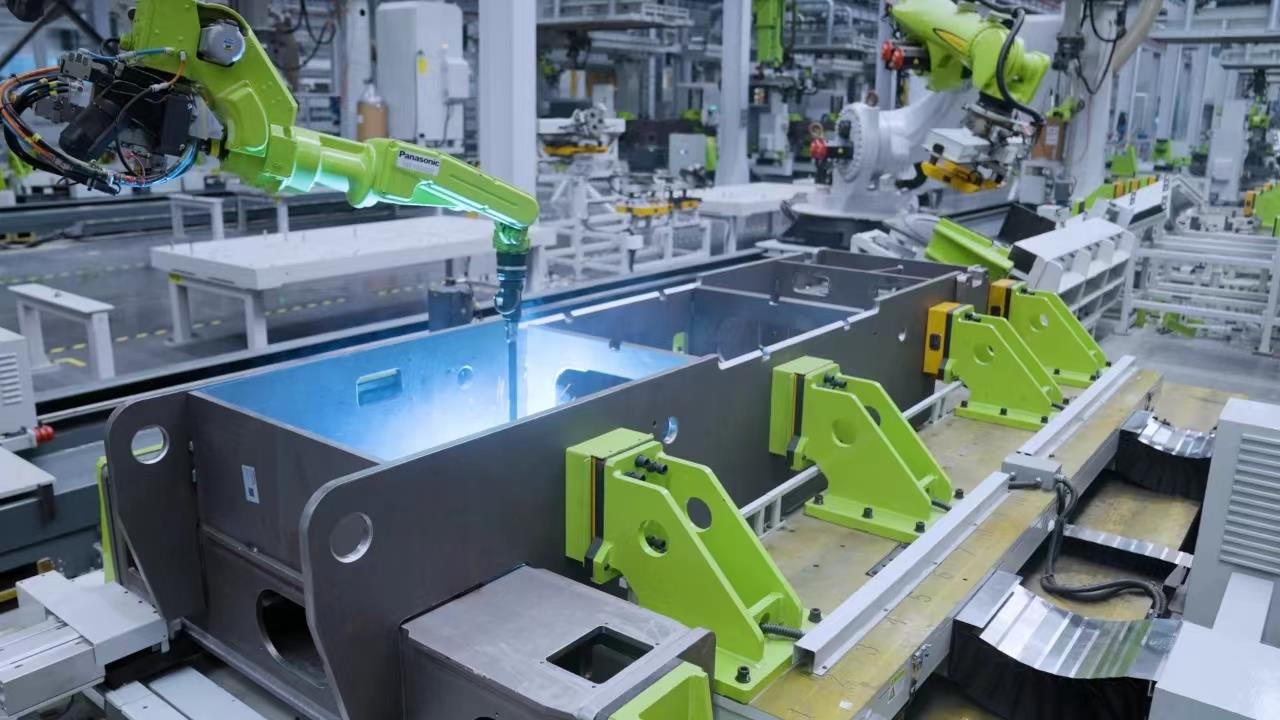 △中聯(lián)重科智能高機(jī)臂式車架轉(zhuǎn)臺結(jié)構(gòu)車間人機(jī)協(xié)同制造場景