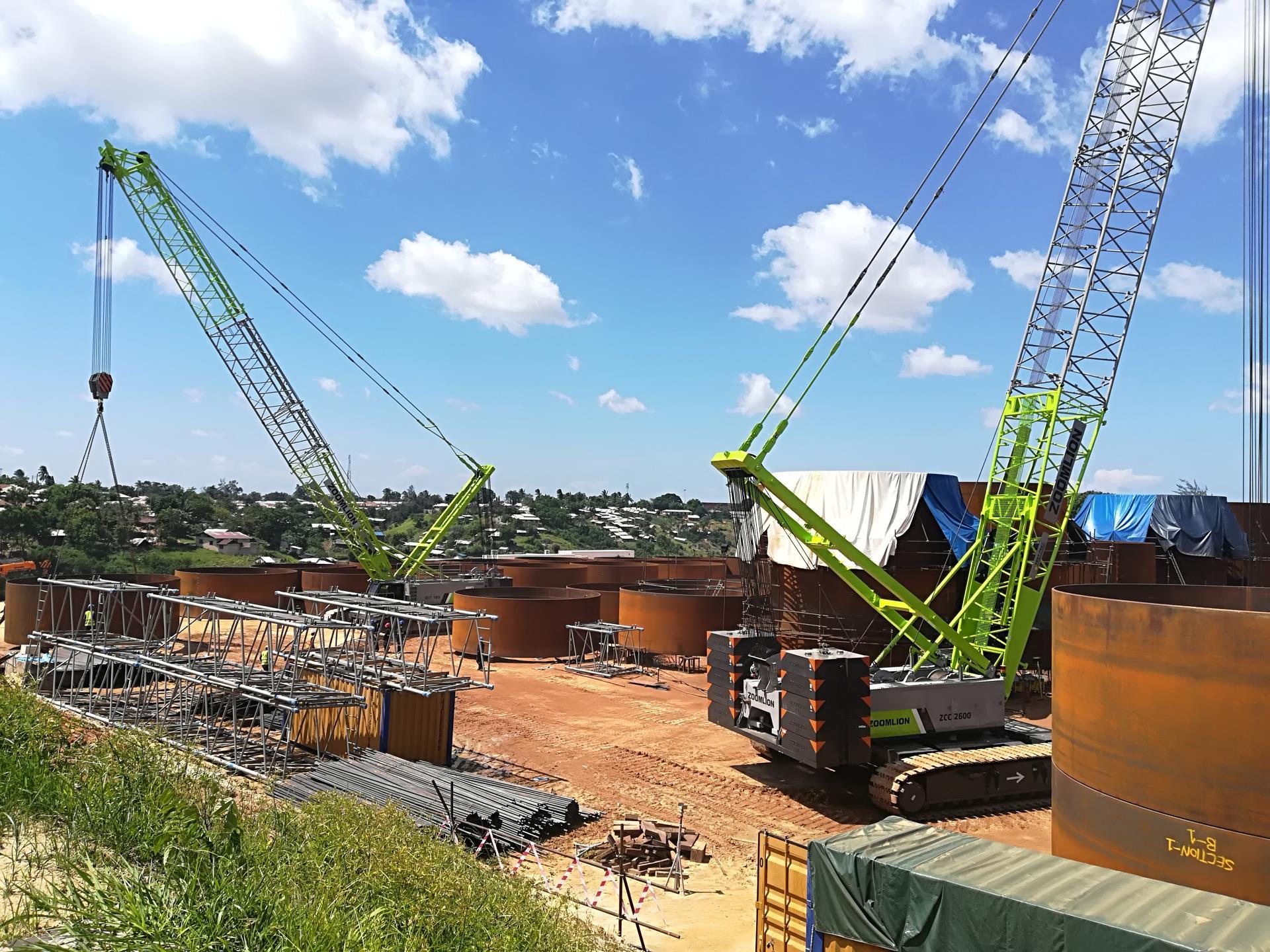 ▲中聯(lián)重科ZCC2600履帶吊助建肯尼亞蒙巴薩石油項目