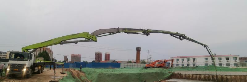 ▲中聯(lián)重科3橋49米泵車在駐馬店某重點(diǎn)工程施工