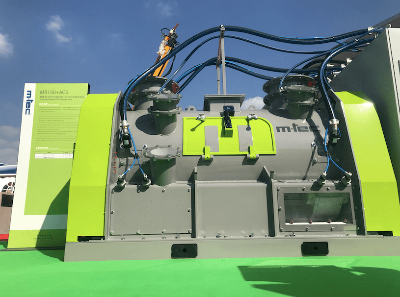 與濕噴機(jī)相比,位于該展位的中聯(lián)重科德國(guó)m-tec的干混砂漿設(shè)備則顯得小而精。個(gè)頭雖小,卻是智慧和科技的結(jié)晶,并且極具“前沿感”。中聯(lián)重科m-tec(中國(guó))總經(jīng)理?xiàng)罱〗榻B道:“m-tec亮相本次展會(huì)的是5款業(yè)界領(lǐng)先的干混砂漿設(shè)備。其中,MR 3D混合機(jī)+ACS自動(dòng)清潔系統(tǒng)也是此次參展的重頭產(chǎn)品。這款產(chǎn)品經(jīng)過(guò)精密計(jì)算和設(shè)計(jì)的混合機(jī)筒體及密封結(jié)構(gòu)、以及滿足各種參數(shù)要求的混合刀具,可迅速使物料達(dá)到99.5%以上的均勻度,小時(shí)產(chǎn)能達(dá)15-200噸,能夠從容應(yīng)對(duì)各種粉料、骨材、微量添加劑、纖維、顏料的高質(zhì)量混合要求,滿足3D砂漿及包括超高性能混凝土等各種復(fù)雜配方的高效率高質(zhì)量生產(chǎn)?!?/span>