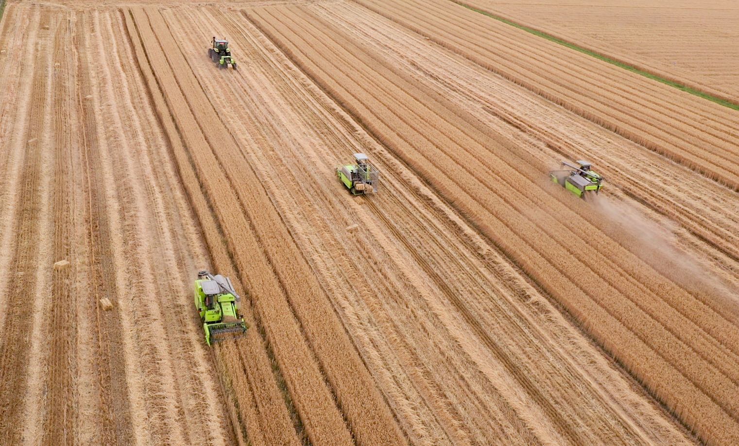 據(jù)央視《新聞直播間》夏收報道畫面顯示,在河南西平縣萬畝高標準農(nóng)田,10臺中聯(lián)重科人工智能收割機穿梭在麥田;在安徽,中聯(lián)重科谷王極光TB80B小麥收割機飛速收割一馬當先,打捆機吞吐“金磚”緊隨其后,拖拉機翻耕夏種無縫連接,中聯(lián)重科農(nóng)機全程機械化助力全國夏糧主產(chǎn)區(qū)實現(xiàn)綠色高效收割。