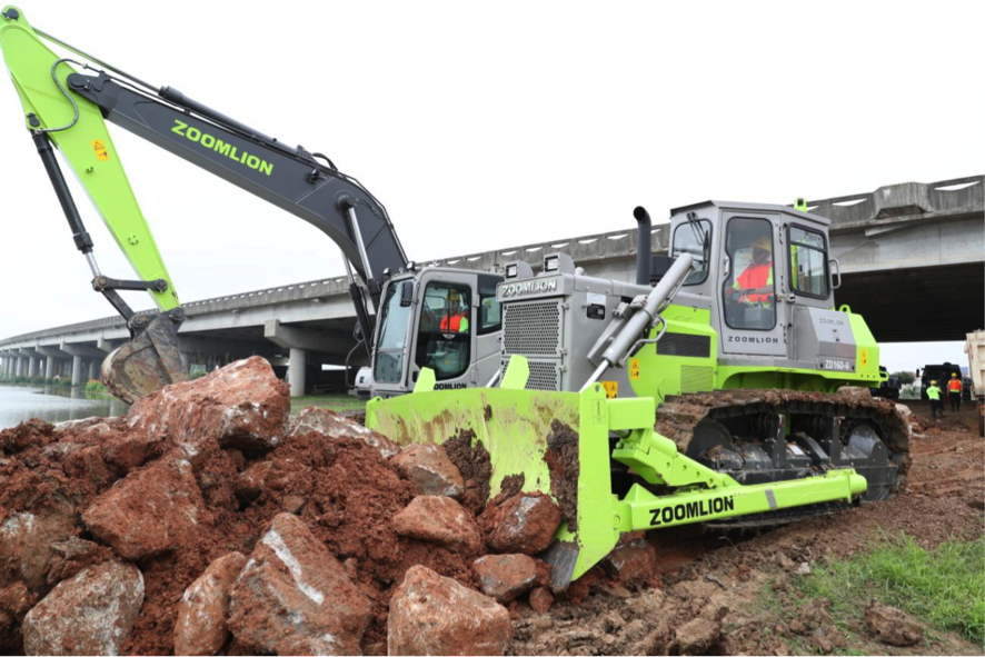 ? ?參與此次演練的中聯(lián)重科ZE205E-10挖掘機(jī)和ZD160-6推土機(jī)都是公司的拳頭產(chǎn)品。ZE205E-10配備定制化液壓系統(tǒng)精心匹配動(dòng)力系統(tǒng),擁有精準(zhǔn)靈敏的操作體驗(yàn);結(jié)構(gòu)件及底盤一體化大截面成型、底盤加厚加寬重載型設(shè)計(jì),堅(jiān)固耐用;動(dòng)力強(qiáng)勁可靠;駕駛室配備懸浮座椅并通過(guò)落物安全保護(hù)、翻滾安全保護(hù)認(rèn)證。 ZD160-6推土機(jī)配備160馬力推土機(jī)搭載濰柴高標(biāo)準(zhǔn)電控發(fā)動(dòng)機(jī),節(jié)能環(huán)保,高效低耗,動(dòng)力強(qiáng)勁。兩款產(chǎn)品能夠全面滿足和應(yīng)對(duì)不同應(yīng)急救援的土方作業(yè)要求。