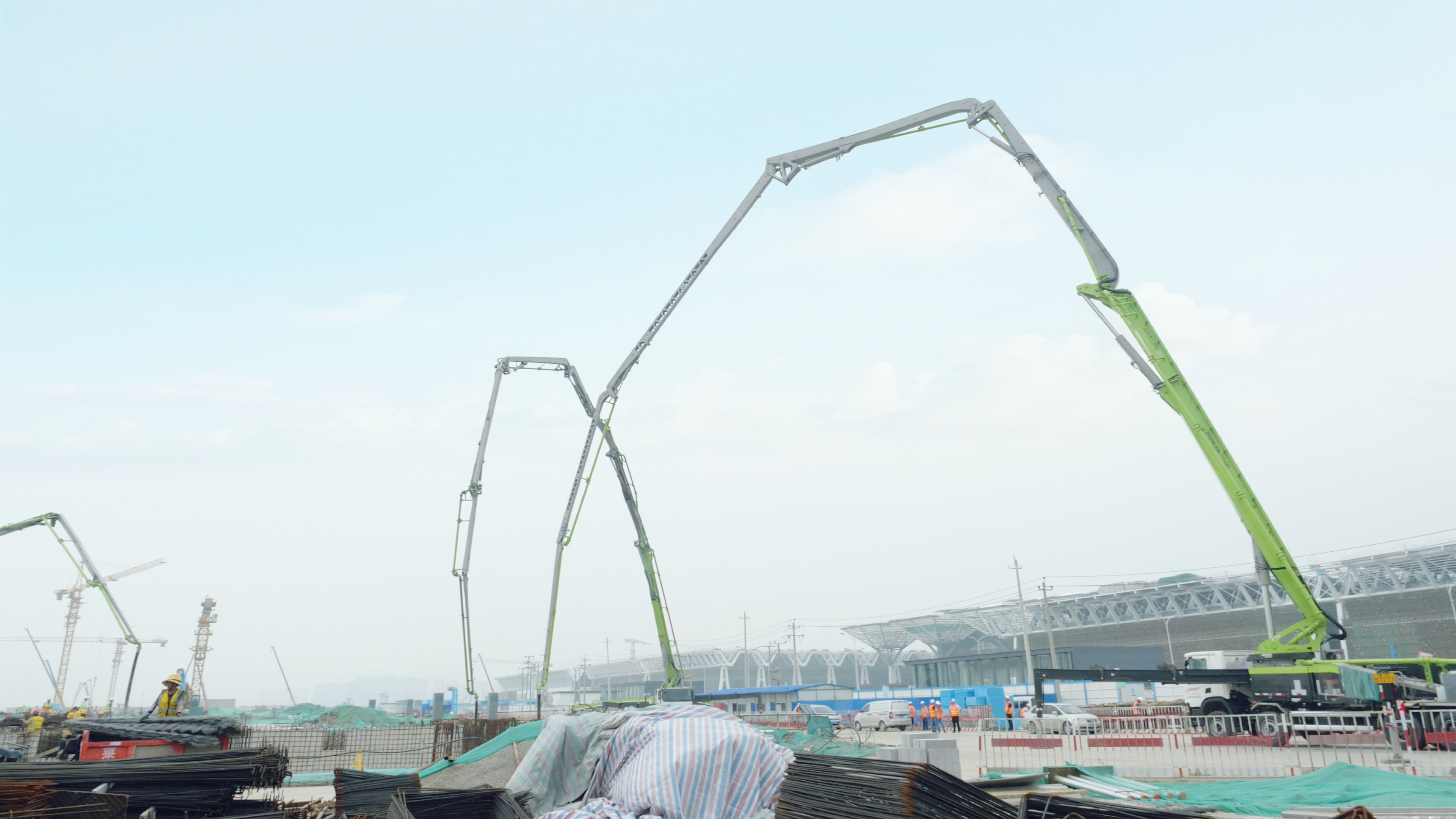 △中聯(lián)重科凌云系列67米泵車助力國家會展中心建設