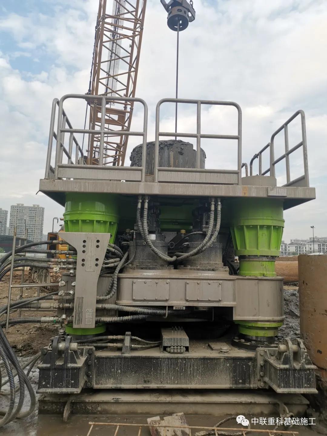 此次杭州項目工地臨近地鐵,周邊居民小區(qū)眾多,對施工設備的降噪標準有著非常高的要求,且該項目工況極為復雜——該樁長較長,且成樁過程中需穿越溶洞、巖層、流沙層等復雜地層進行地下灌注樁施工,若采用傳統(tǒng)施工工藝則難度較大,安全風險較高。項目施工方綜合考慮,**終決定使用中聯重科全回轉鉆機進行一次性全套管跟進來實現成孔成樁。