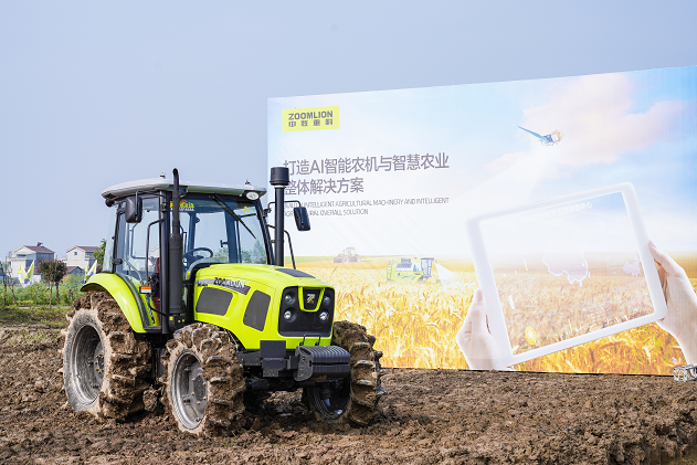△活動(dòng)現(xiàn)場(chǎng)展示的中聯(lián)智慧農(nóng)業(yè)數(shù)據(jù)采集設(shè)備及高端大馬力拖拉機(jī)
