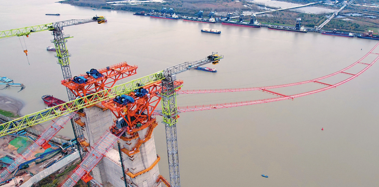 日前,國內(nèi)**大跨度單層懸索橋——南京仙新路過江通道的貓道實(shí)現(xiàn)全線貫通,并完成了貓道防護(hù)系統(tǒng)安裝。在施工過程中,中聯(lián)重科塔機(jī)憑借高抗風(fēng)性、高穩(wěn)定性、高起升效率、高就位精準(zhǔn)度等顯著優(yōu)勢,助力項(xiàng)目在長江上空架設(shè)起一條橫跨1760米的施工“生命線”。