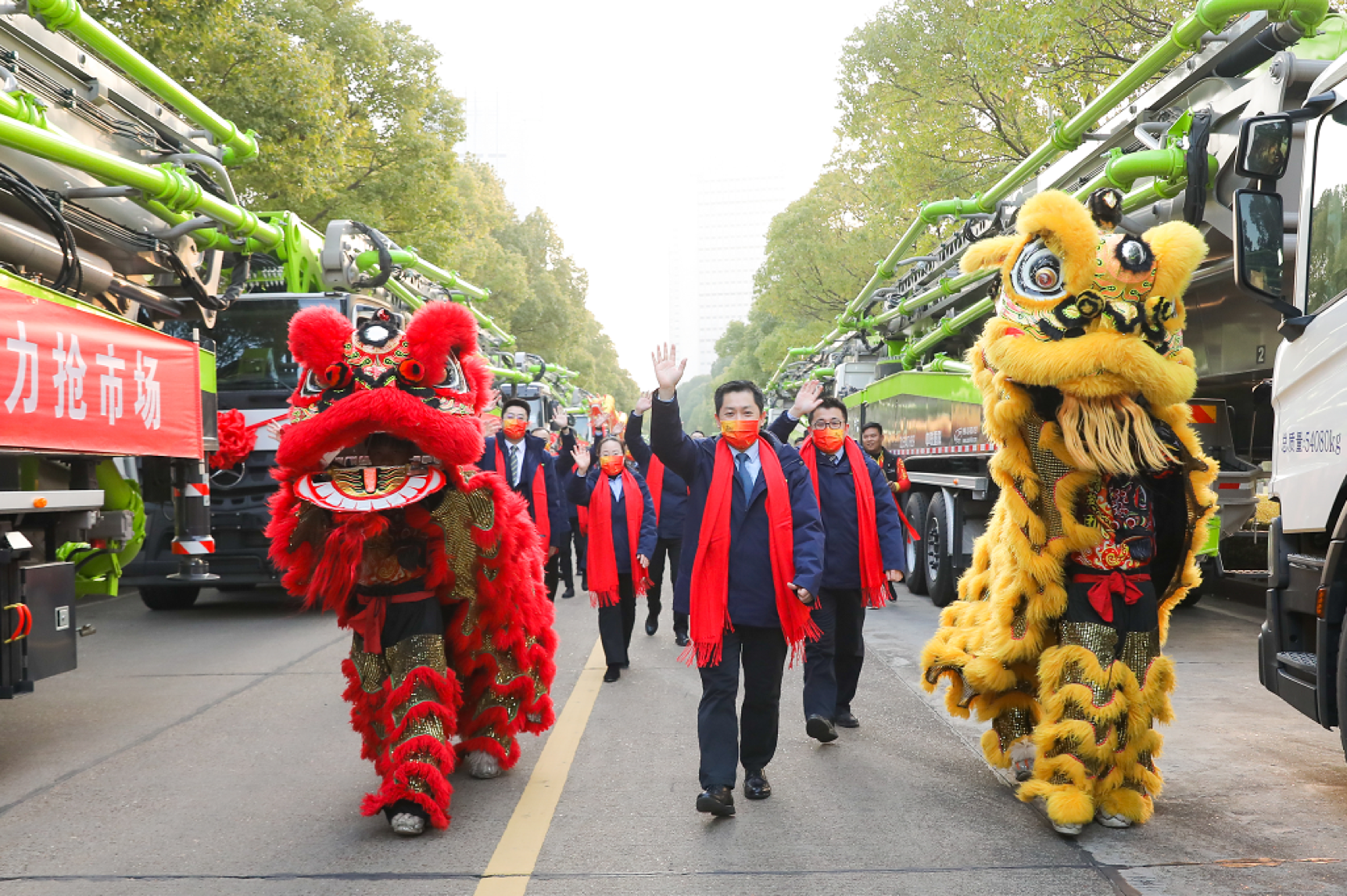 ????? 1月27日,正月初六上午8:08,中聯(lián)重科麓谷工業(yè)園龍獅齊舞、鑼鼓喧天,在一片熱鬧喜慶的氛圍中,中聯(lián)重科混凝土泵送機械新春“開門紅”暨全球發(fā)車儀式隆重舉行。