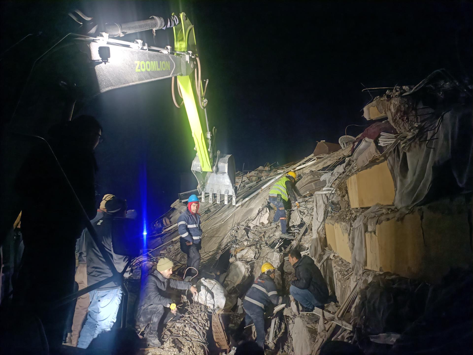 地震發(fā)生后,根據(jù)公司指示,中聯(lián)重科土耳其子公司立即派出由專業(yè)服務(wù)工程師、機(jī)手組成的救援團(tuán)隊(duì),攜帶災(zāi)區(qū)急需的電熱毯、應(yīng)急藥品、食品等物資,與首批5臺挖掘機(jī)設(shè)備連夜啟程,趕往災(zāi)區(qū)。