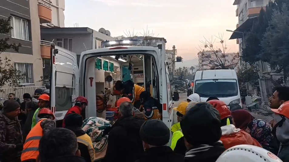 哈塔伊省是此次土耳其地震的重災(zāi)區(qū)之一。9日下午,救援人員在當(dāng)?shù)匾惶帍U墟中發(fā)現(xiàn)了一位老人,坍塌的樓板壓在身上讓她無法動彈,嘴里不斷發(fā)出呼喊,但聲音卻越來越微弱。正在附近搜救的中聯(lián)重科救援隊立即趕到現(xiàn)場,查看后發(fā)現(xiàn)廢墟是一棟7層樓房坍塌后形成的,整棟樓因地基損壞,整體已向后傾倒,傾斜角度已超30度。老人被困在二樓,救援面臨重重困難。